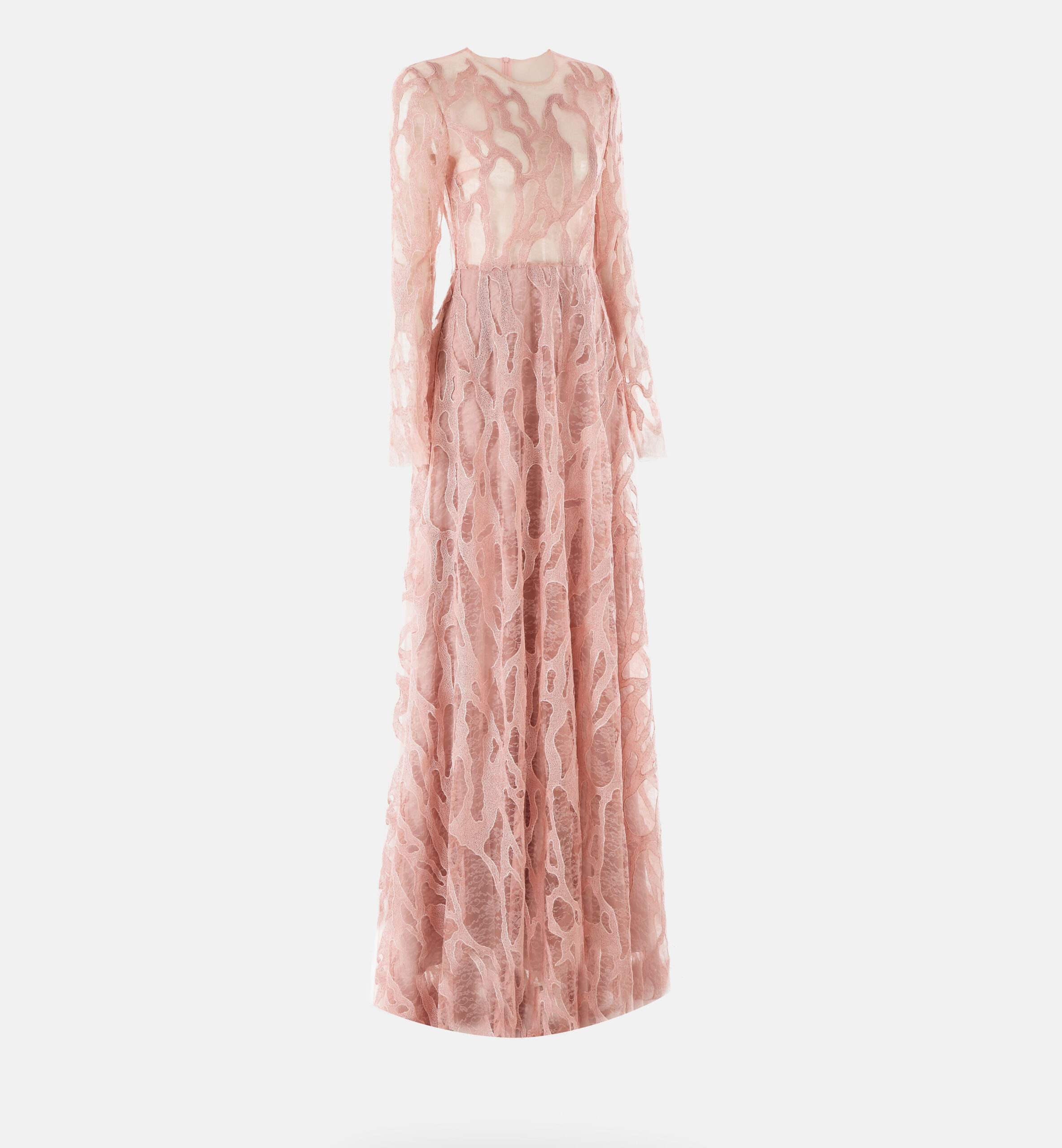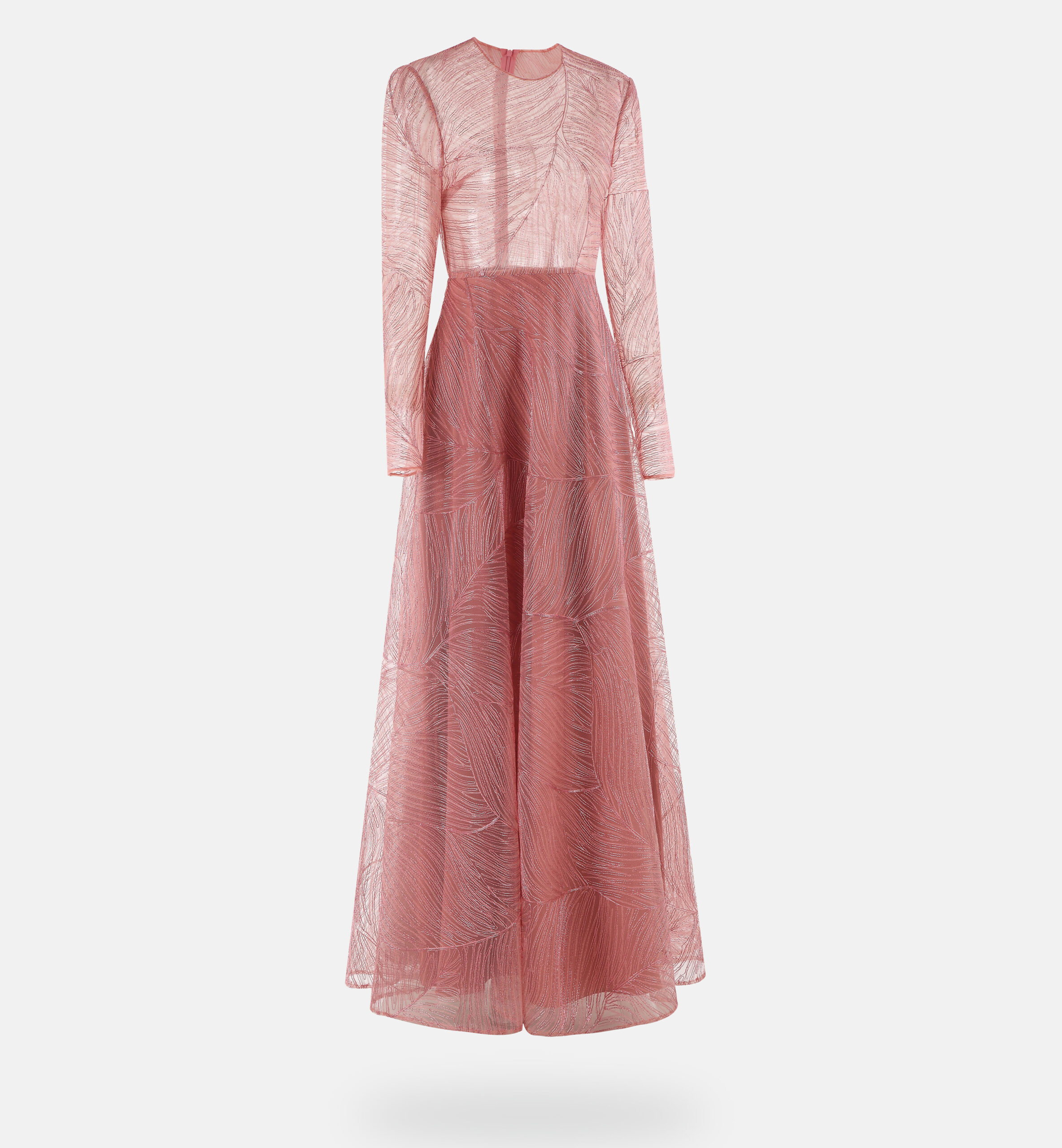 שמלת טול ורקמת רפיה מטאלית, ורוד