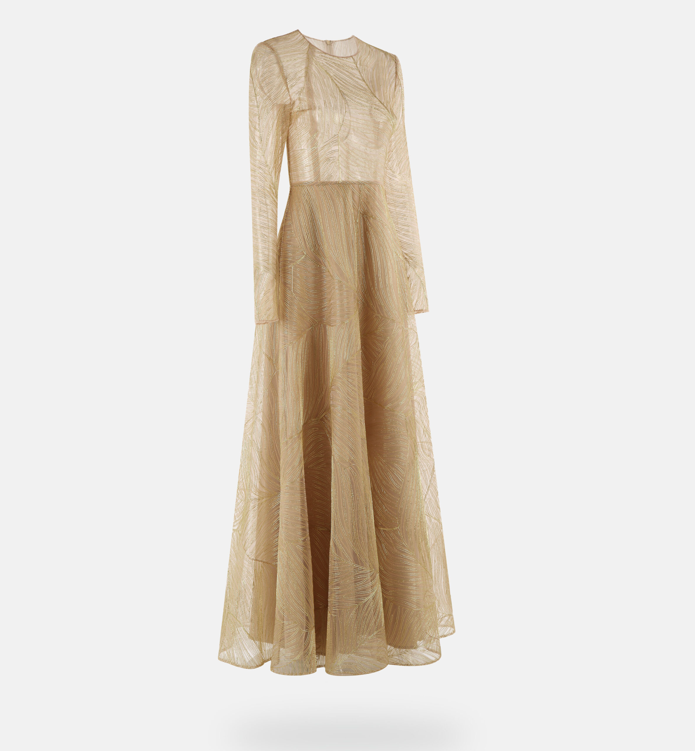 שמלת טול ורקמת רפיה מטאלית, זהב