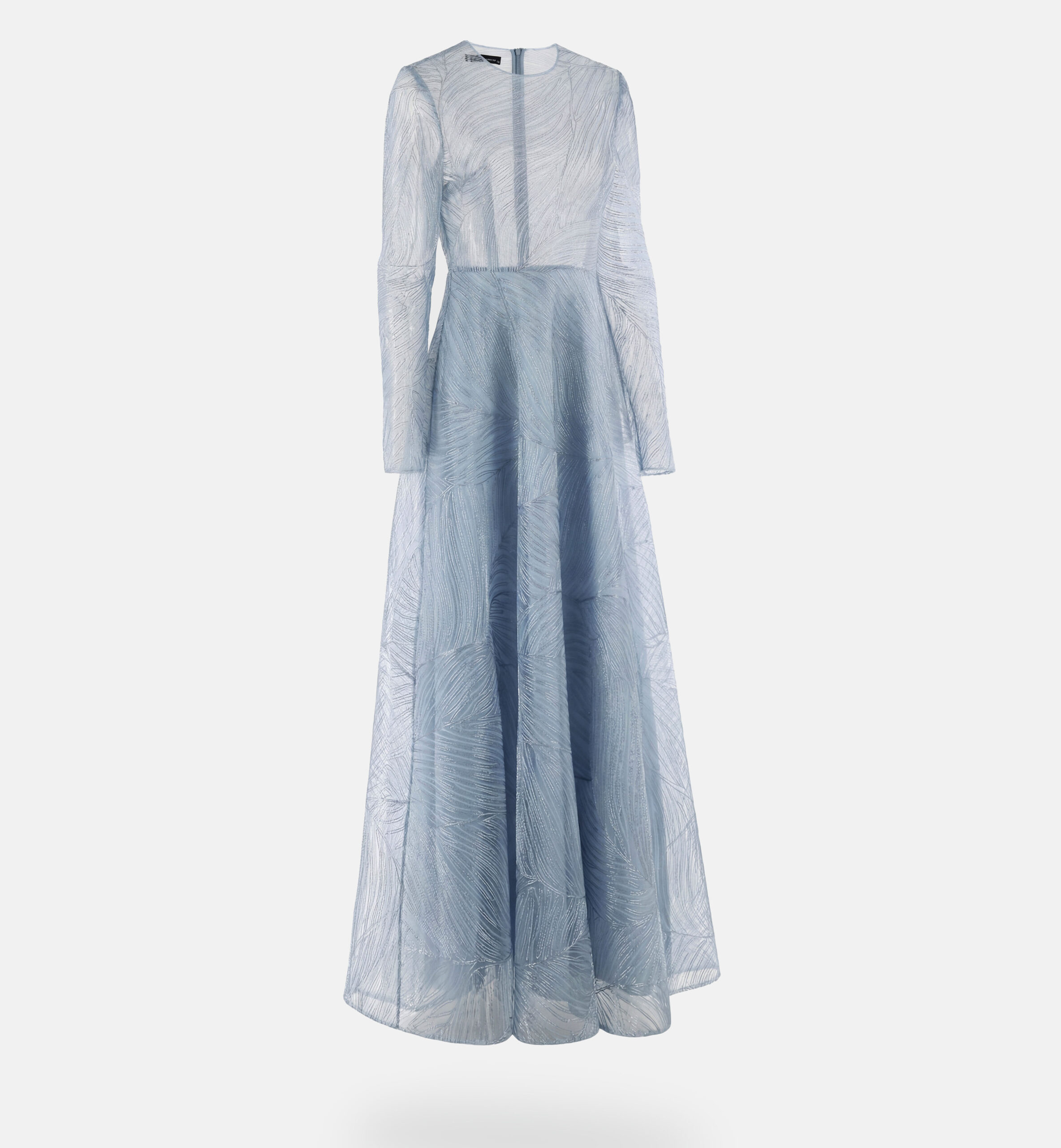 שמלת טול ורקמת רפיה מטאלית, תכלת