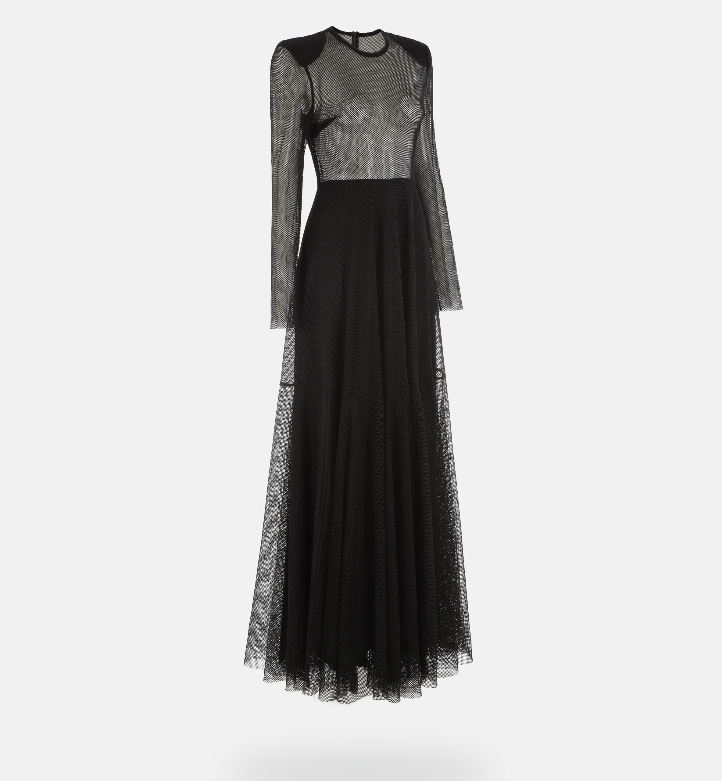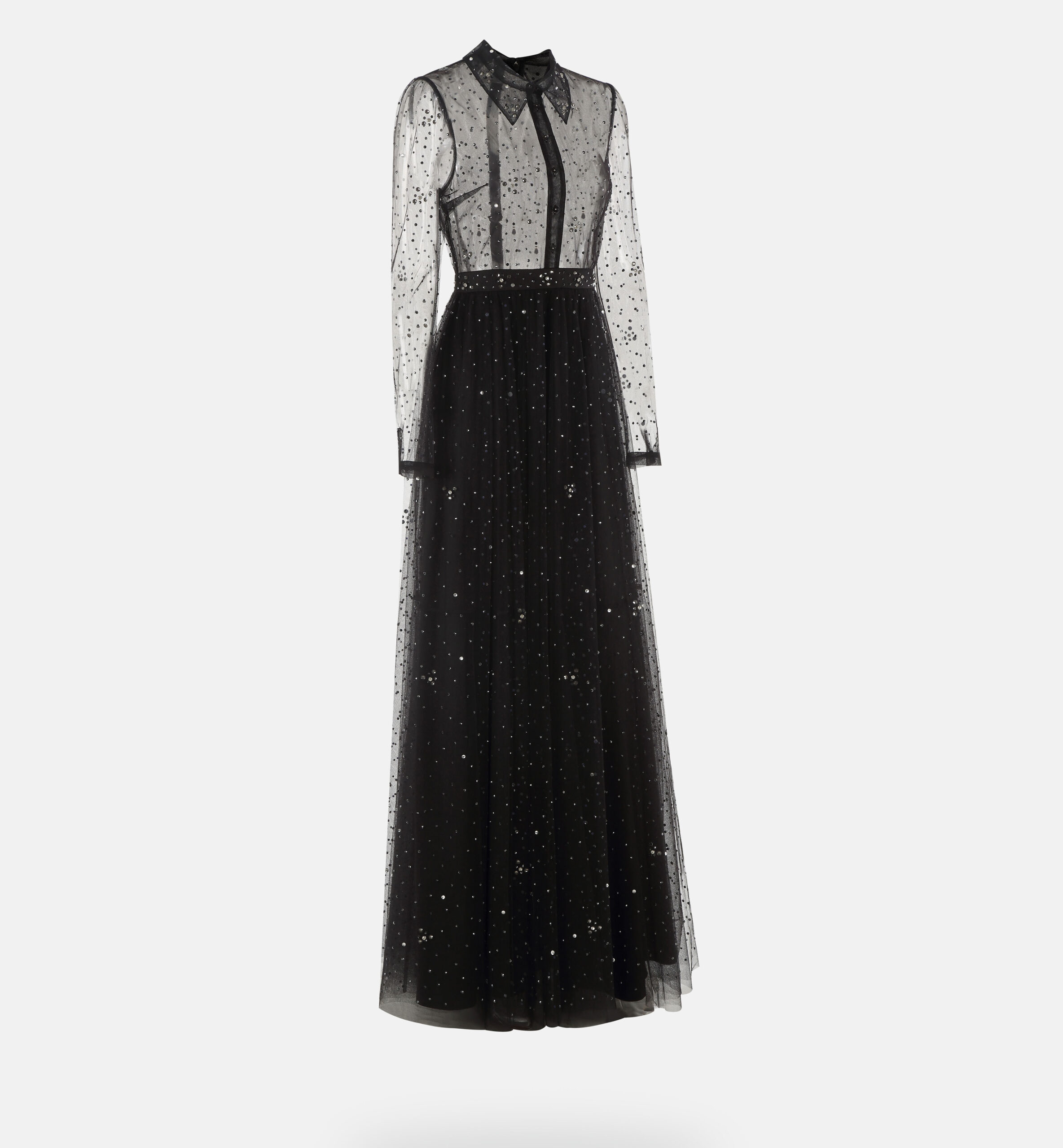 שמלת טול אבנים מכופתרת מקסי, שחור