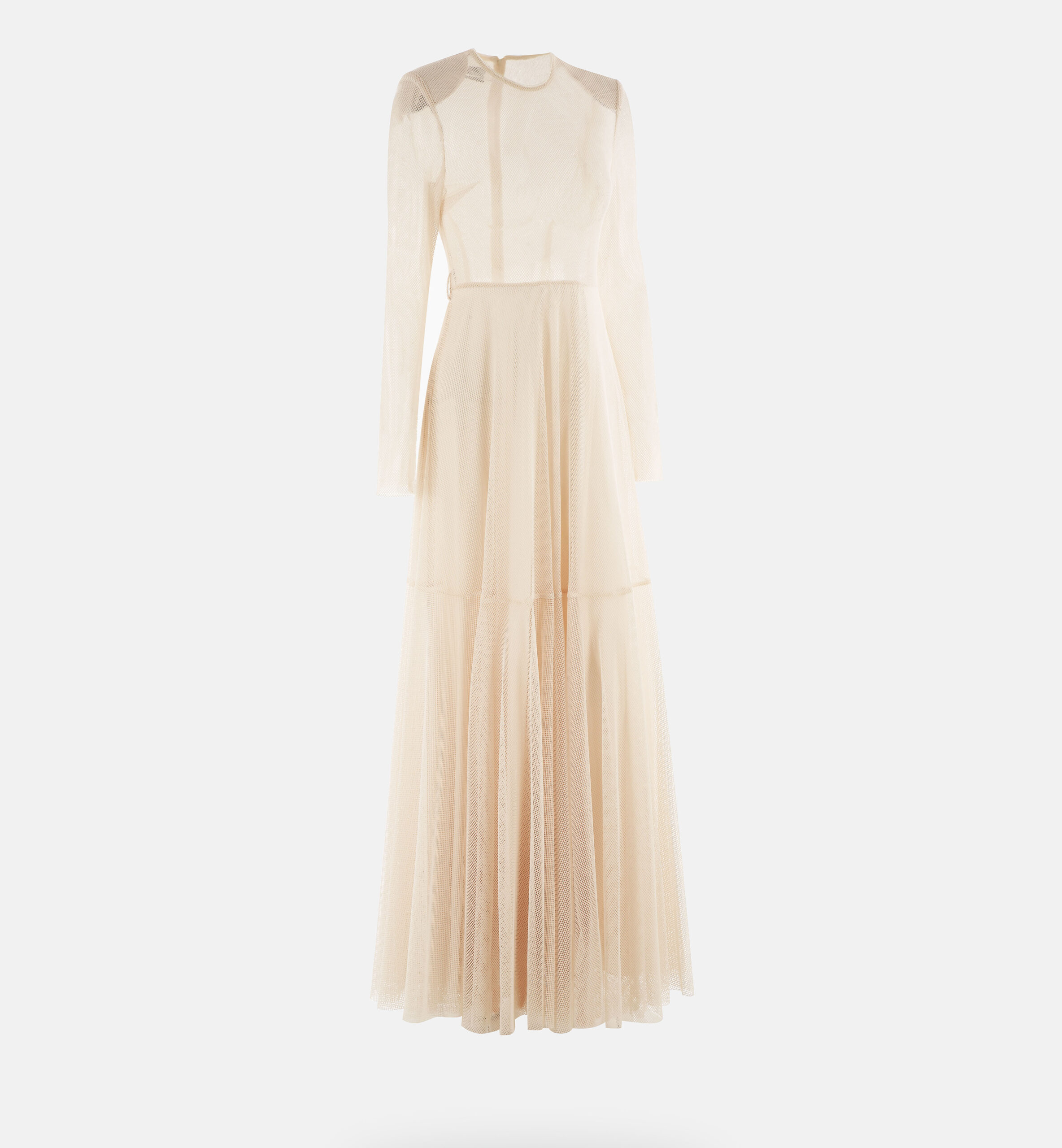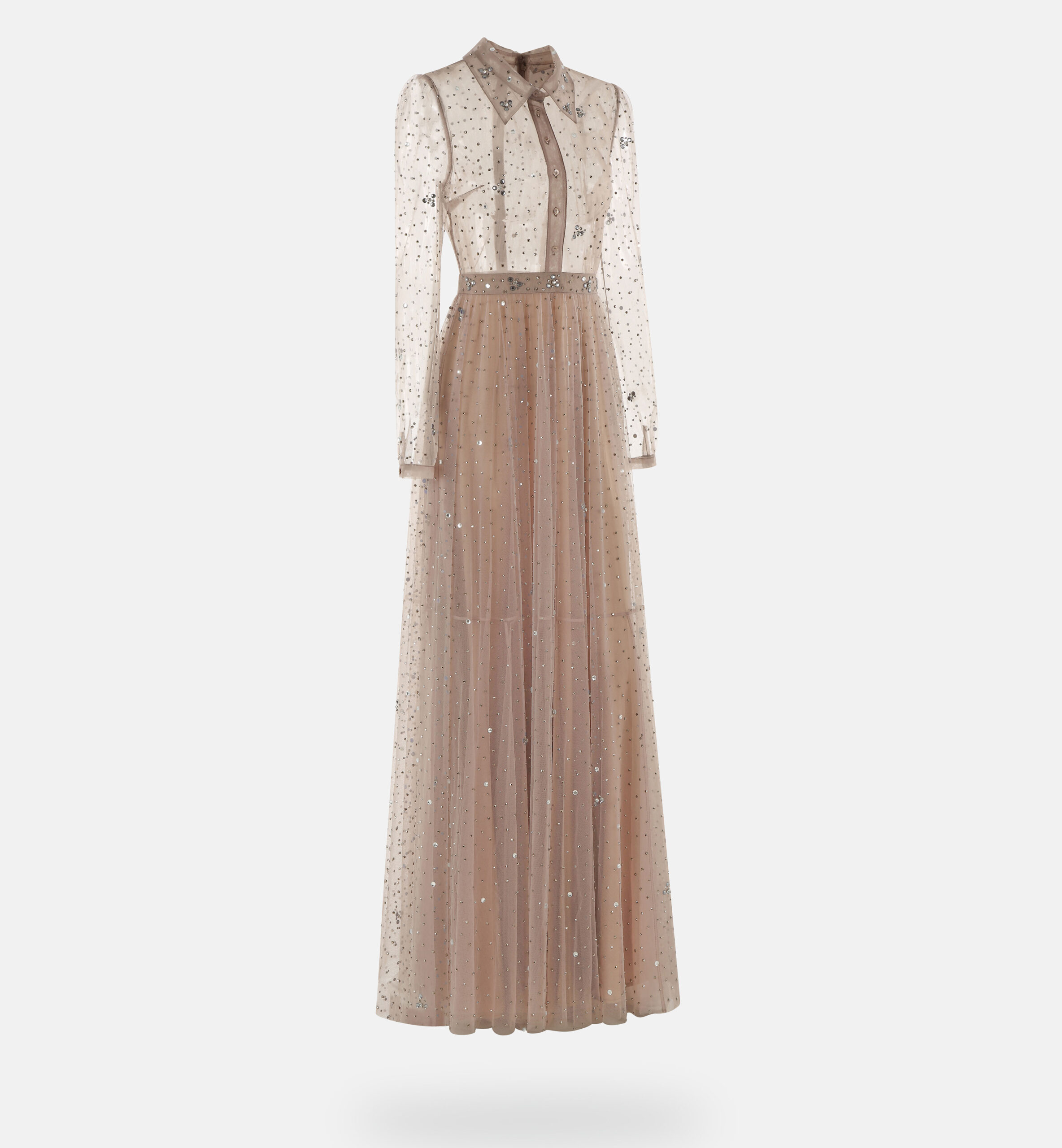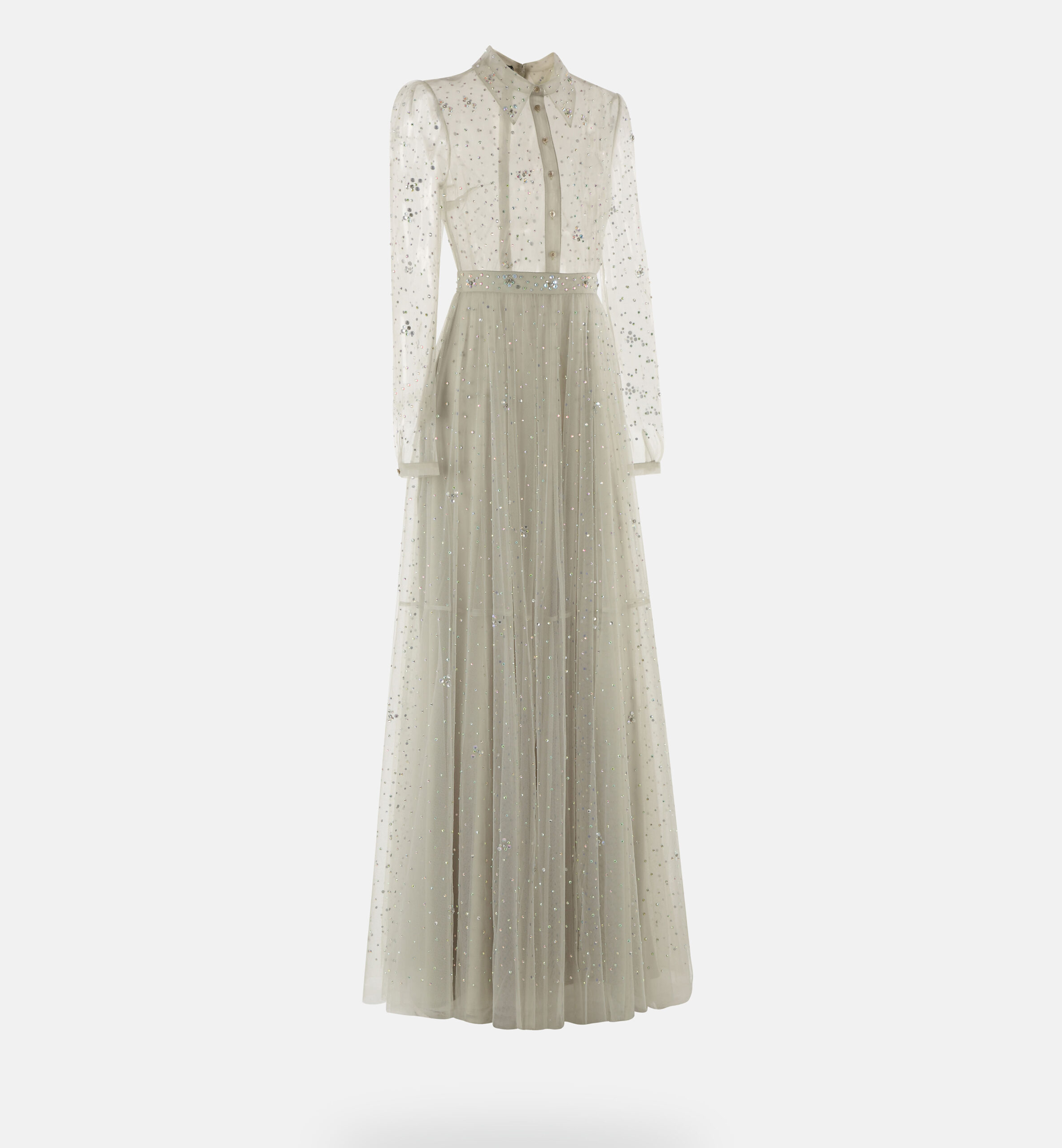 שמלת טול אבנים מכופתרת מקסי, אבן