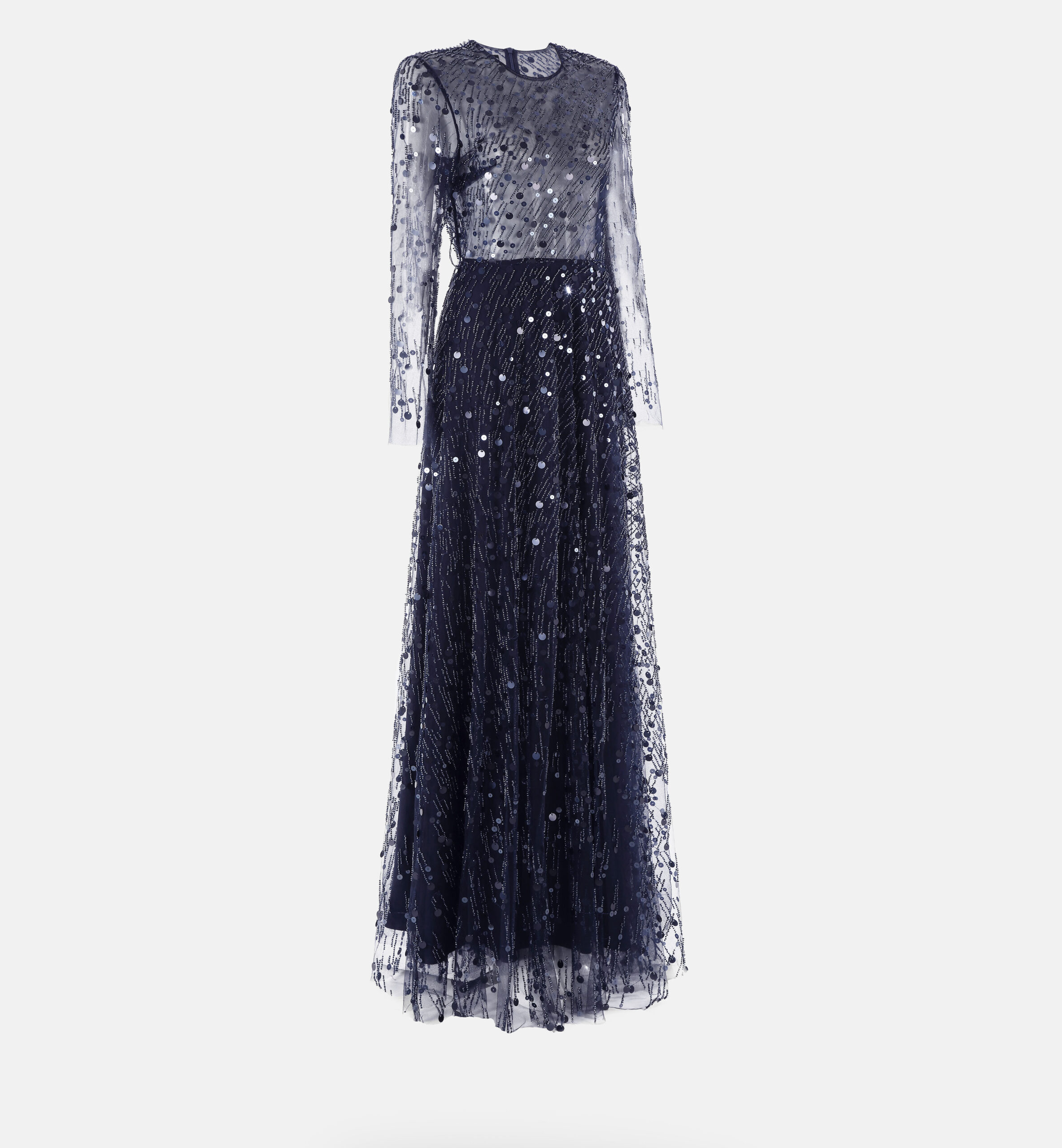 שמלת טול פאייטים אלכסון מקסי, כחול