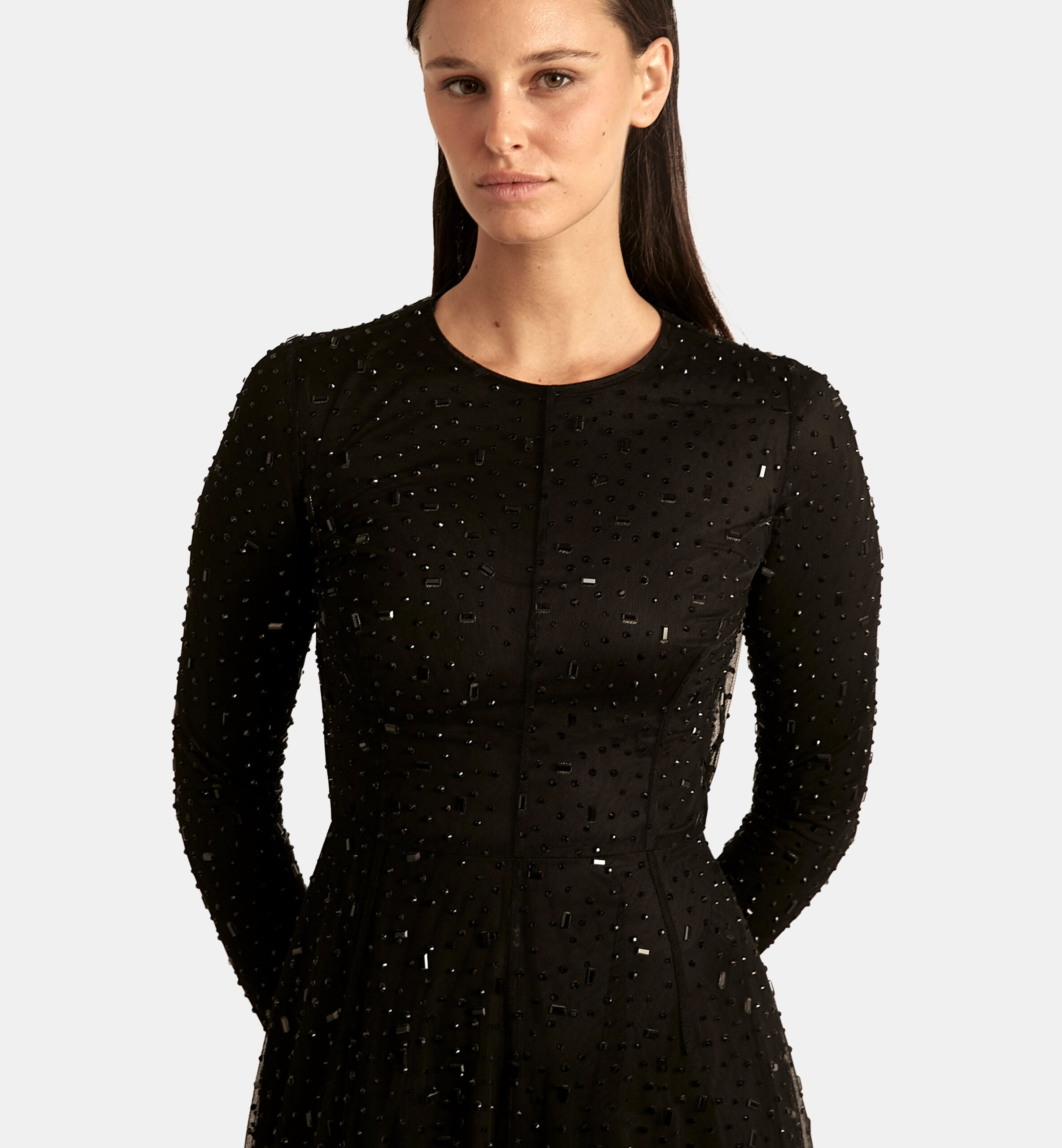 שמלת טול אבנים קלוש חלקים מקסי, שחור