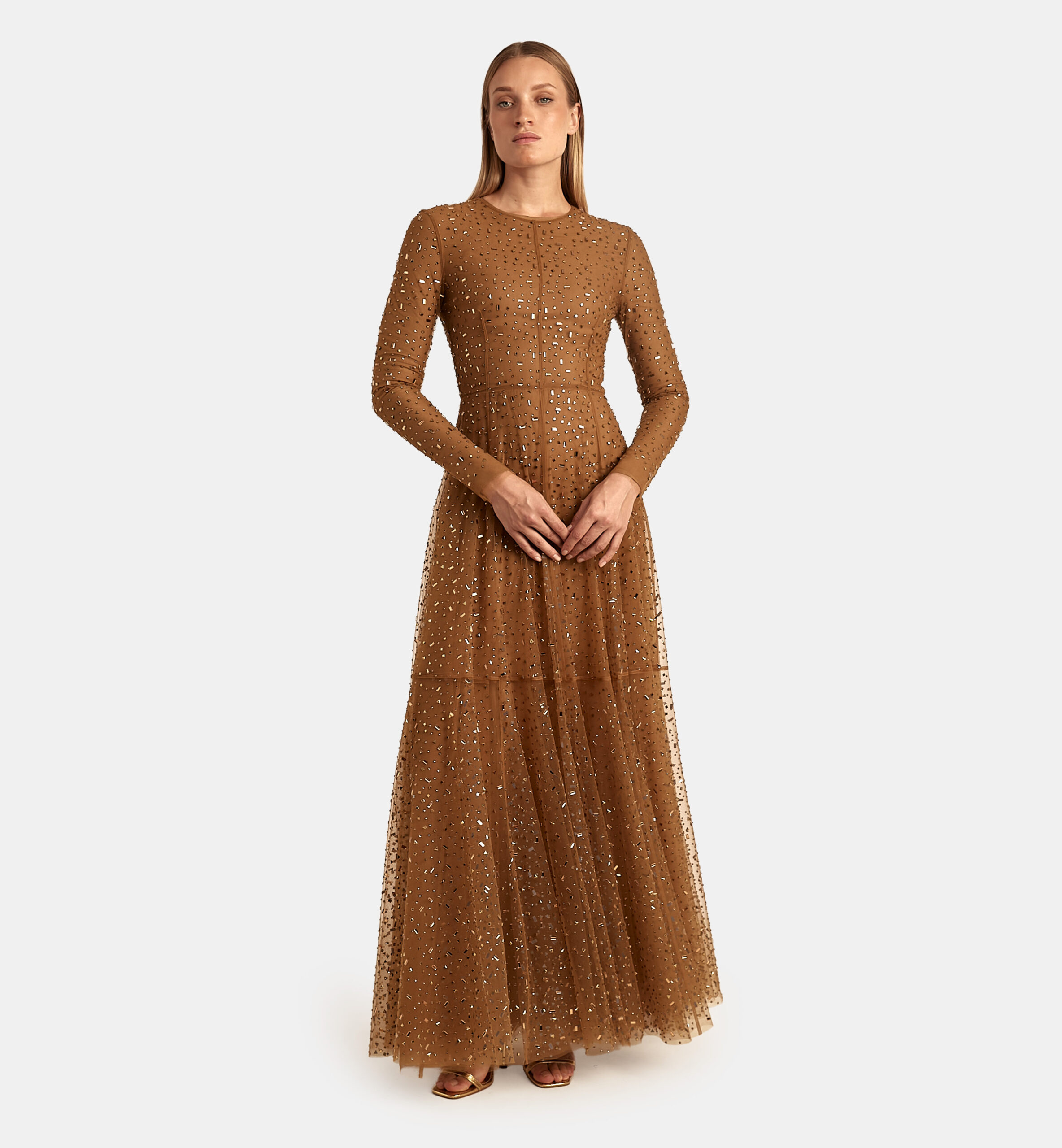שמלה טול קלוש אבנים דגרדה מקסי, חום