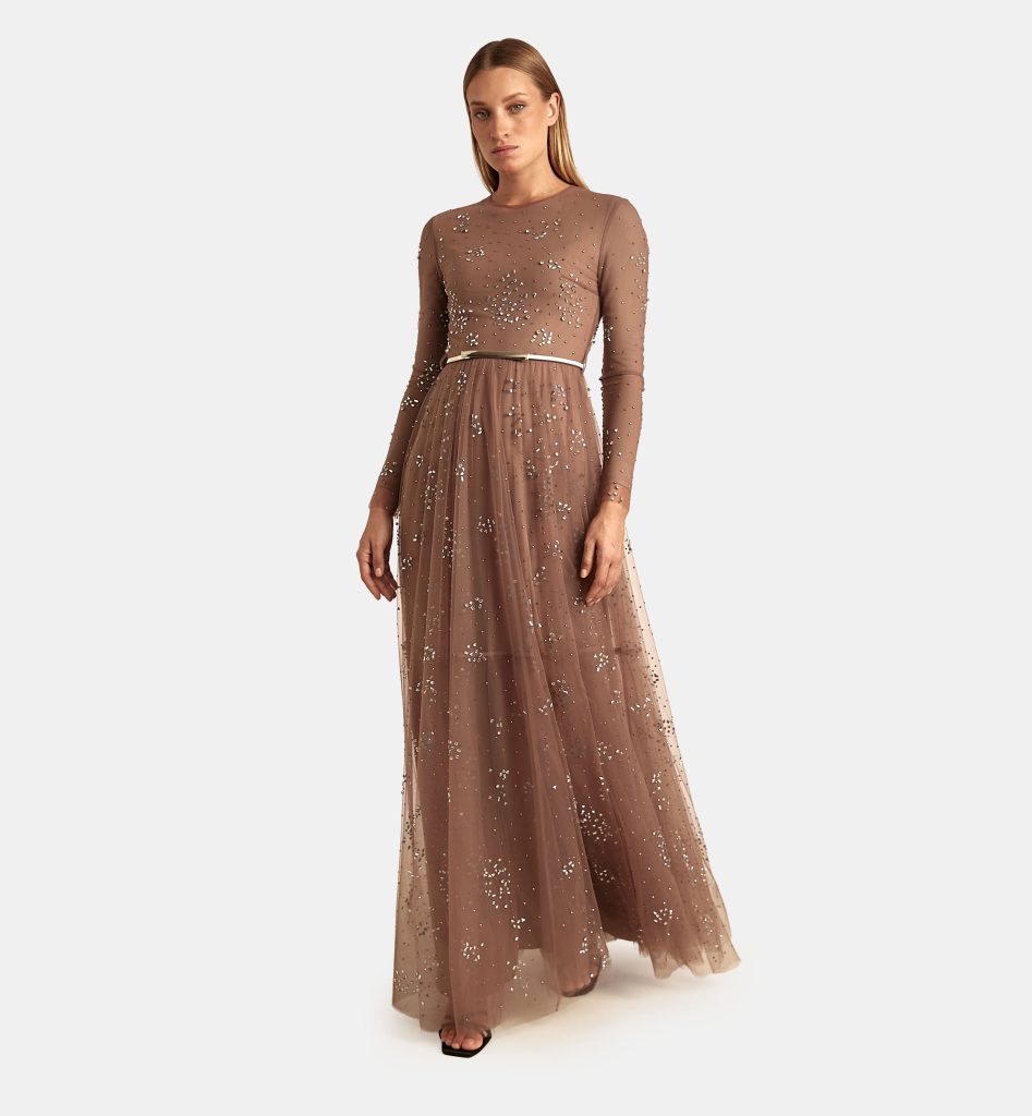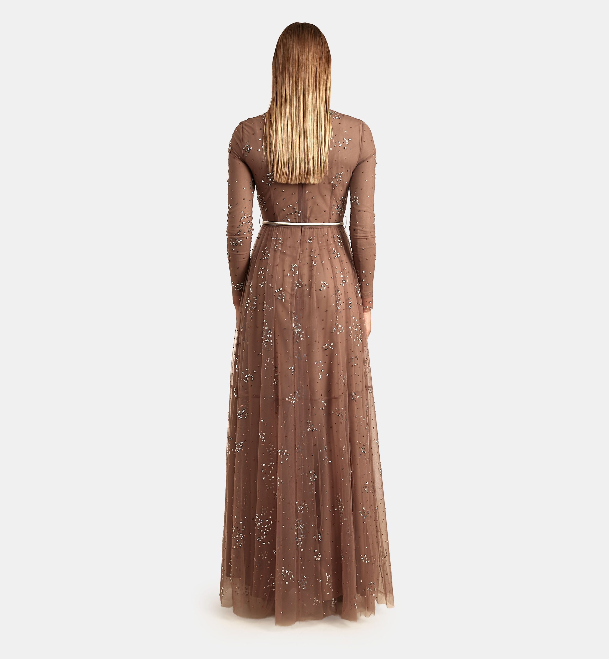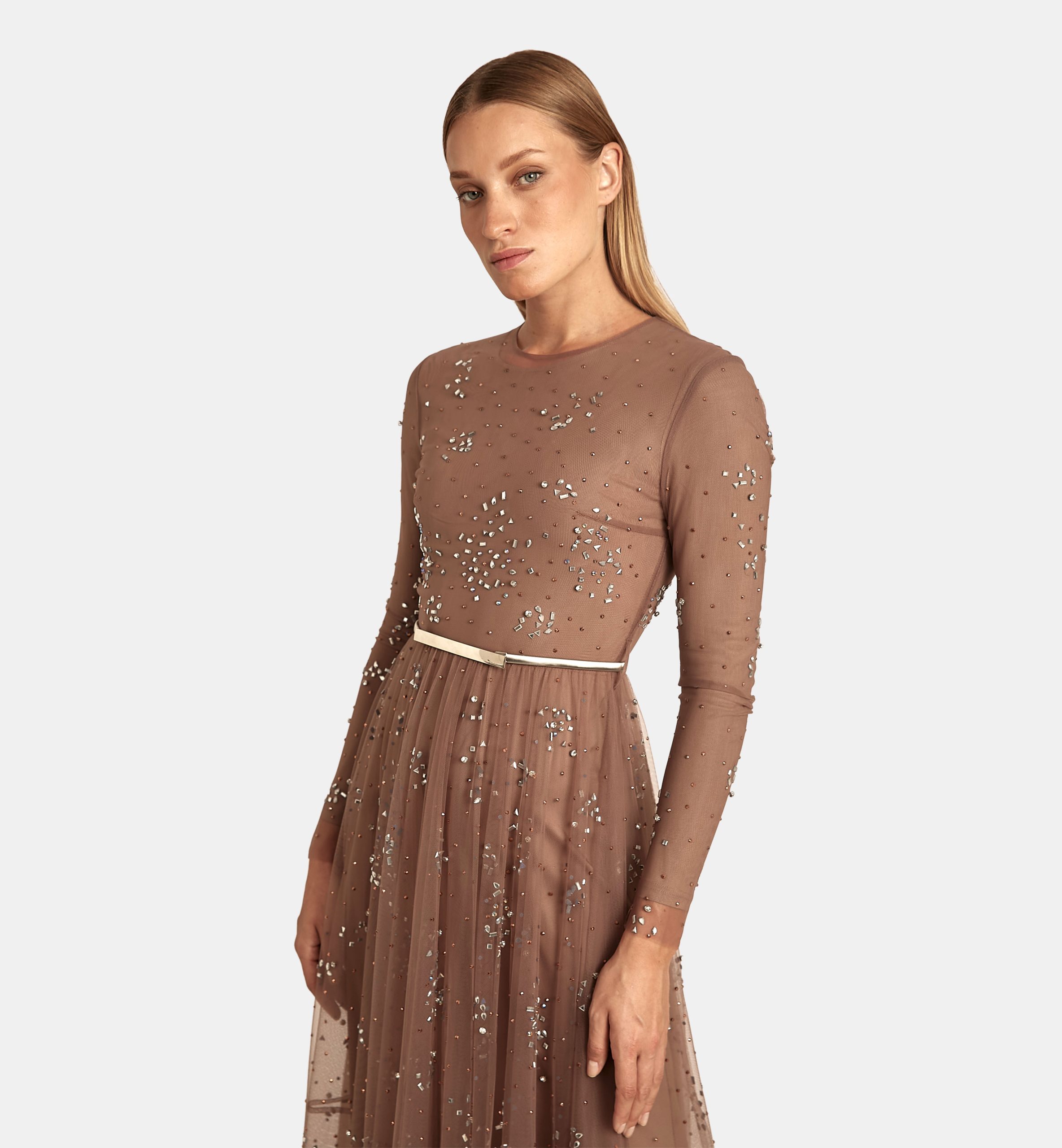 שמלה טול אבנים אבסטרקטי מקסי, שזיף