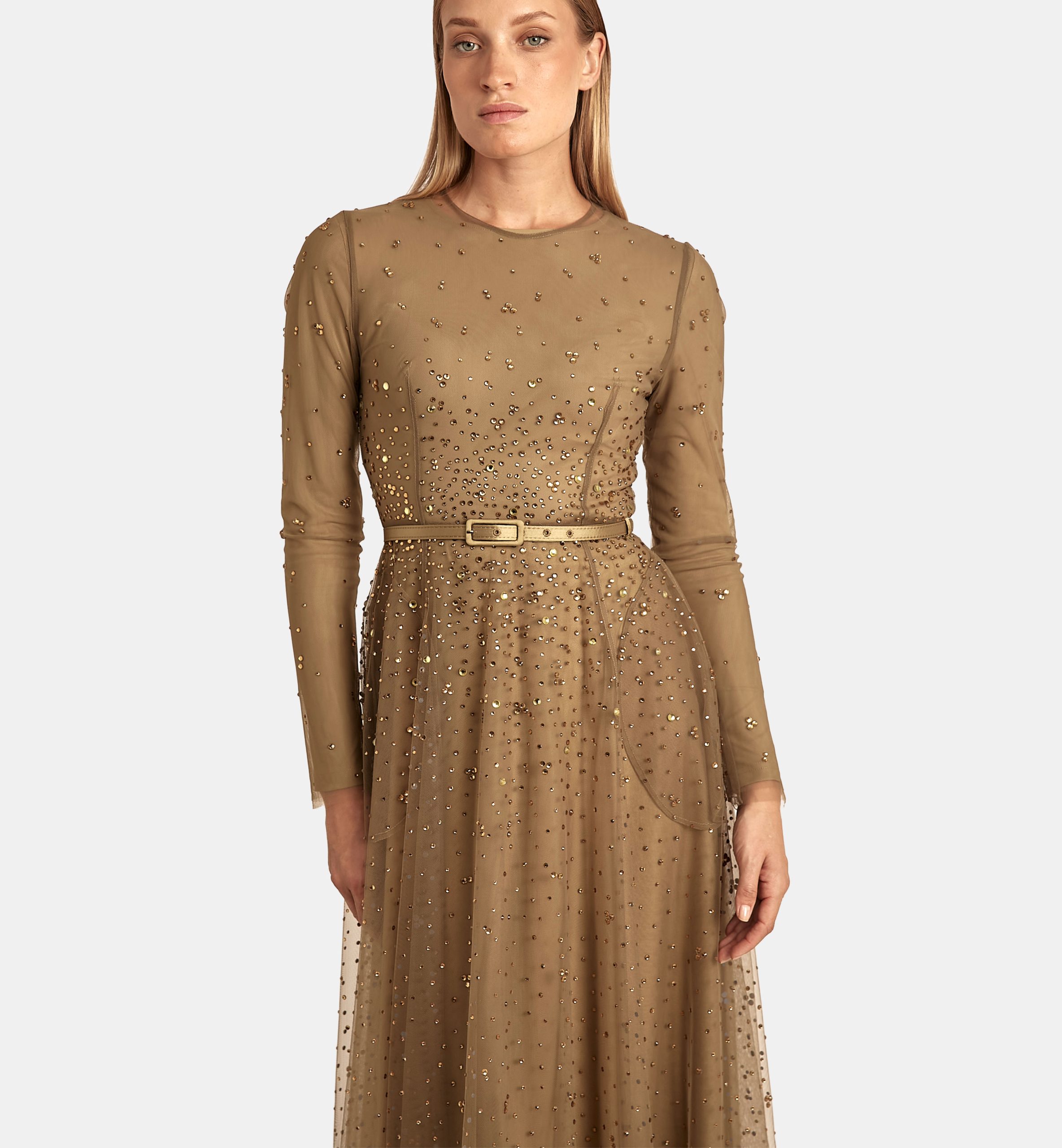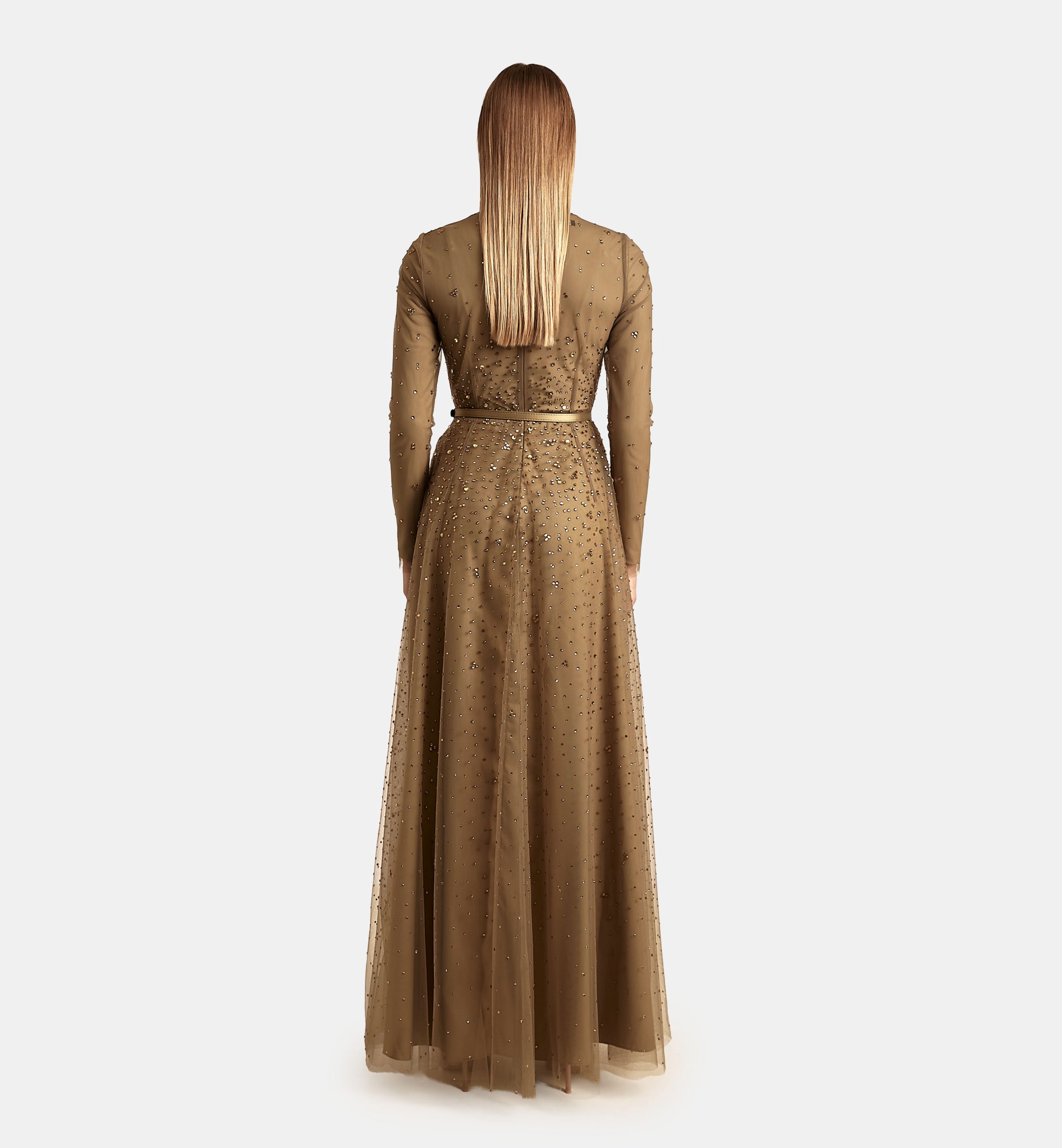 שמלה טול קלוש אבנים דגרדה מקסי, זית