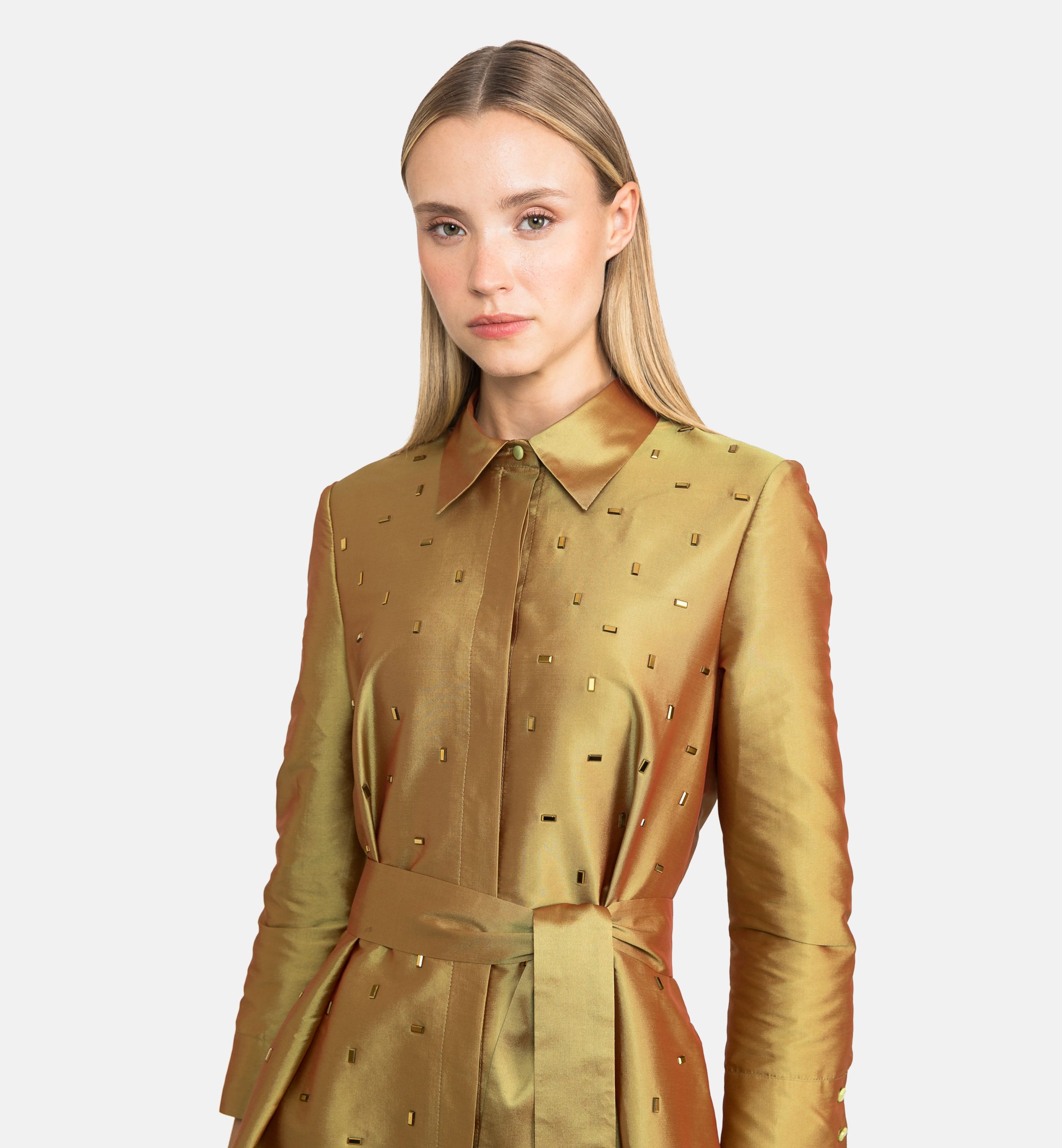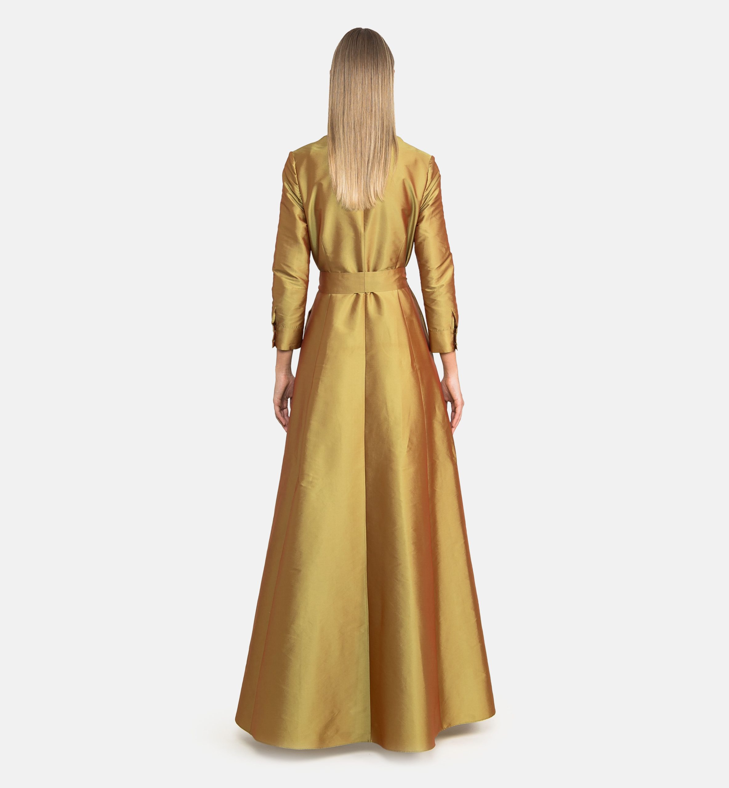 שמלה טפט מכופתרת מעוטרת אבנים מקסי, זהב