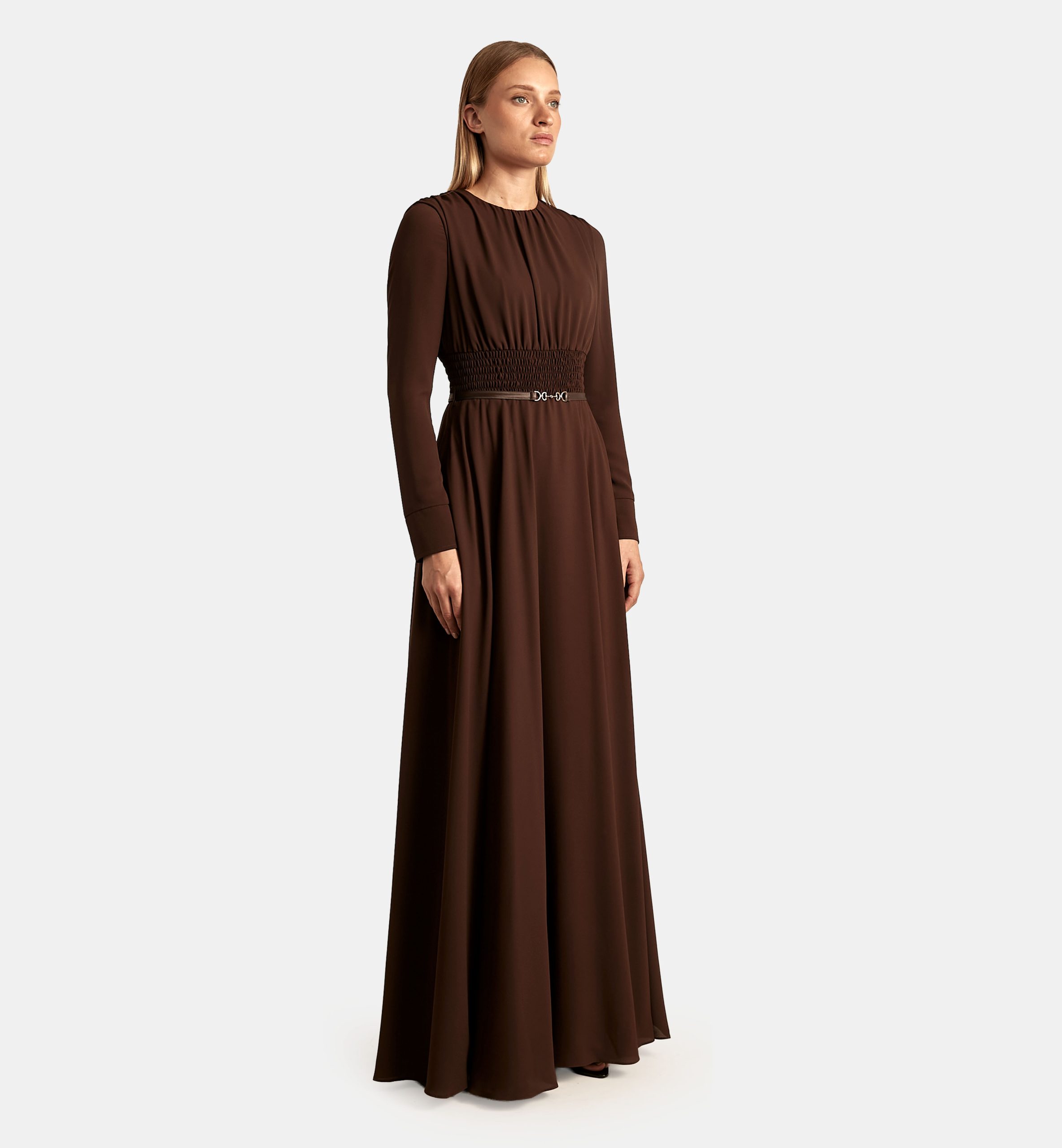 שמלה טול אבנים אבסטרקטי מקסי, שזיף