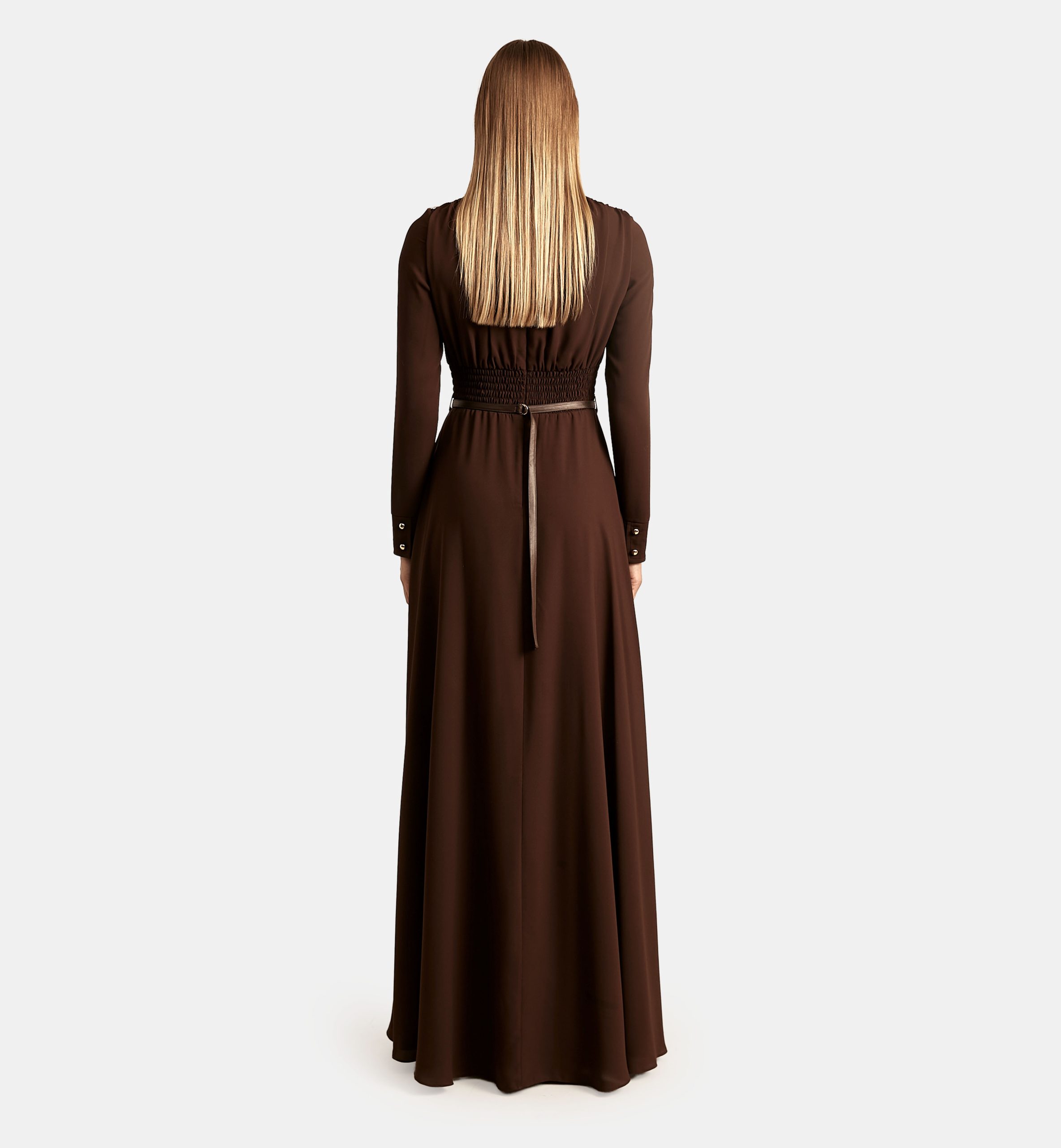 שמלה טפט מכופתרת מעוטרת אבנים מקסי, זהב