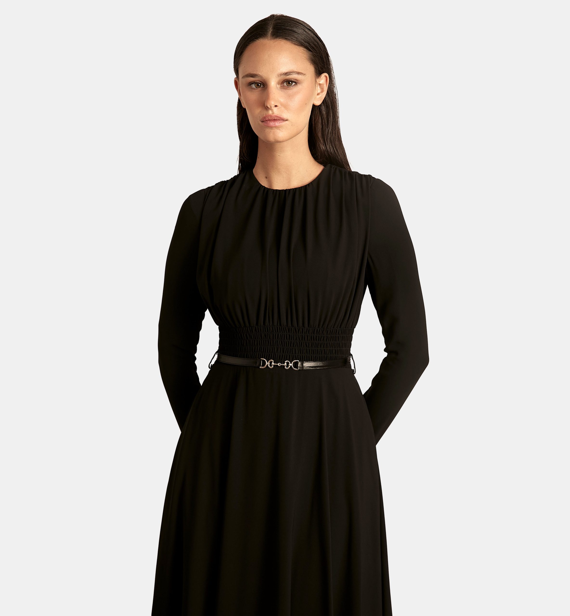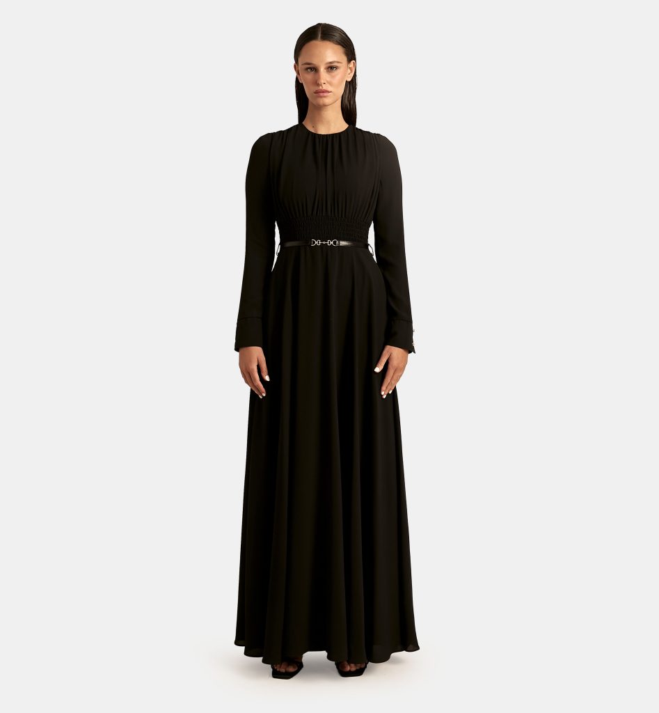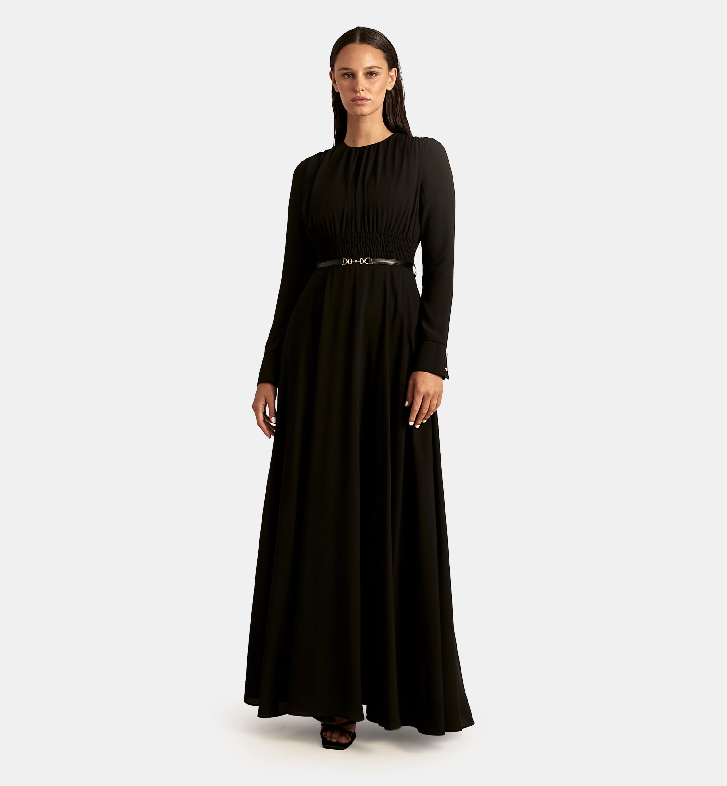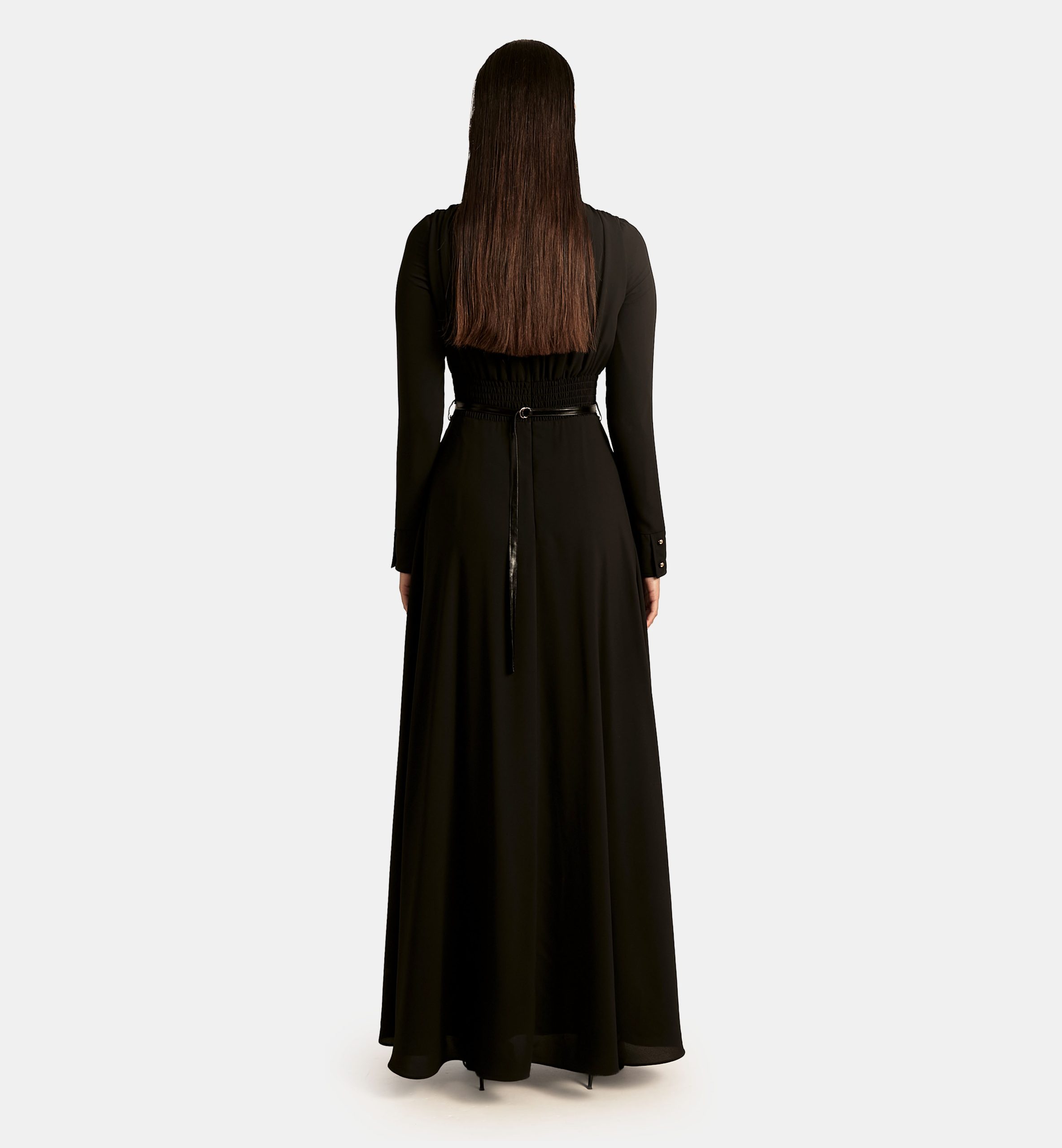 שמלה שיפון וחגורת גומי מקסי, שחור