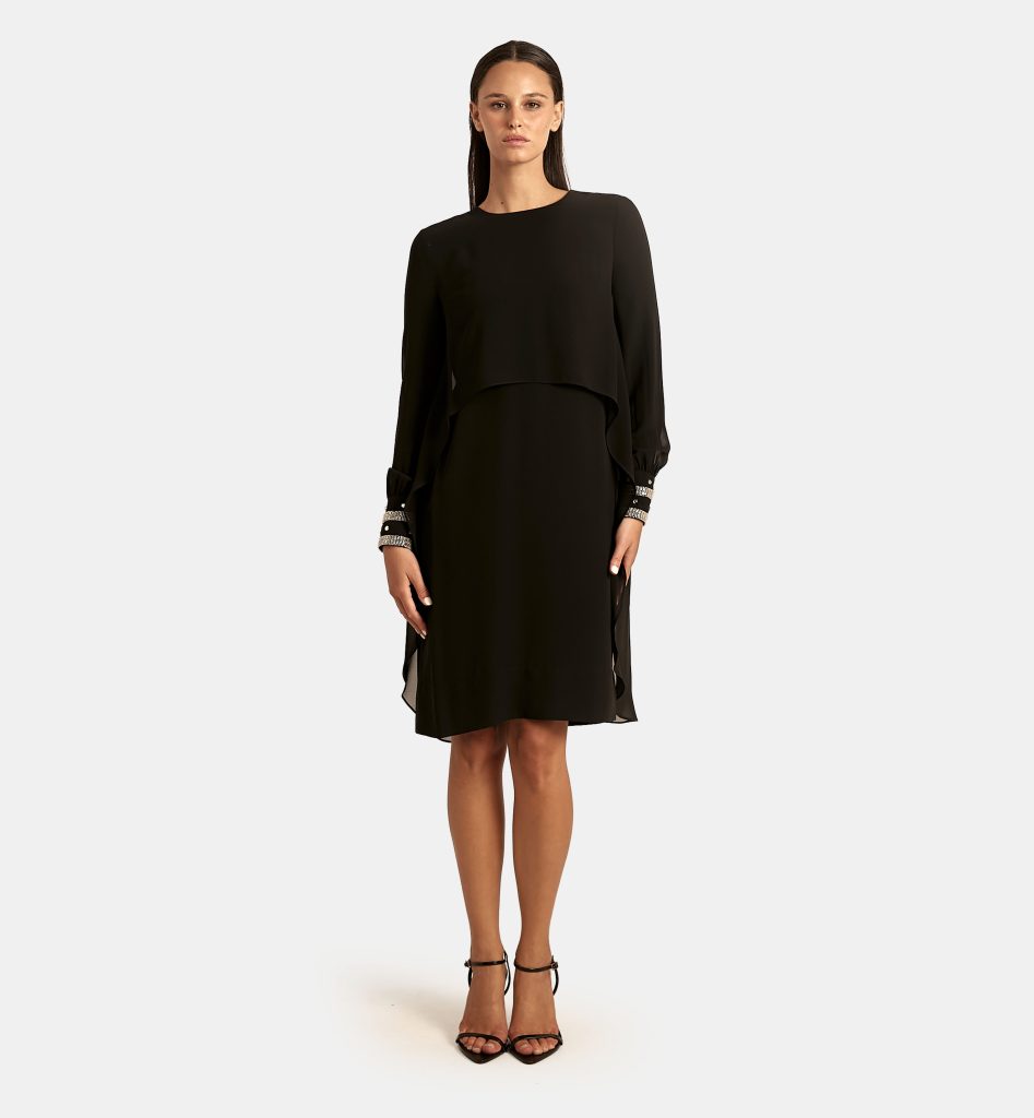 שמלה שיפון שכמיה ידון מעוטר, שחור