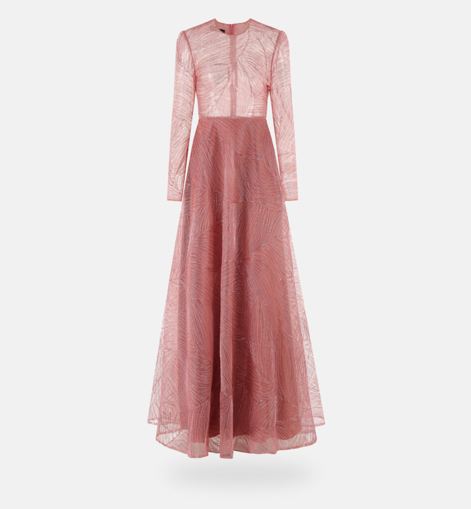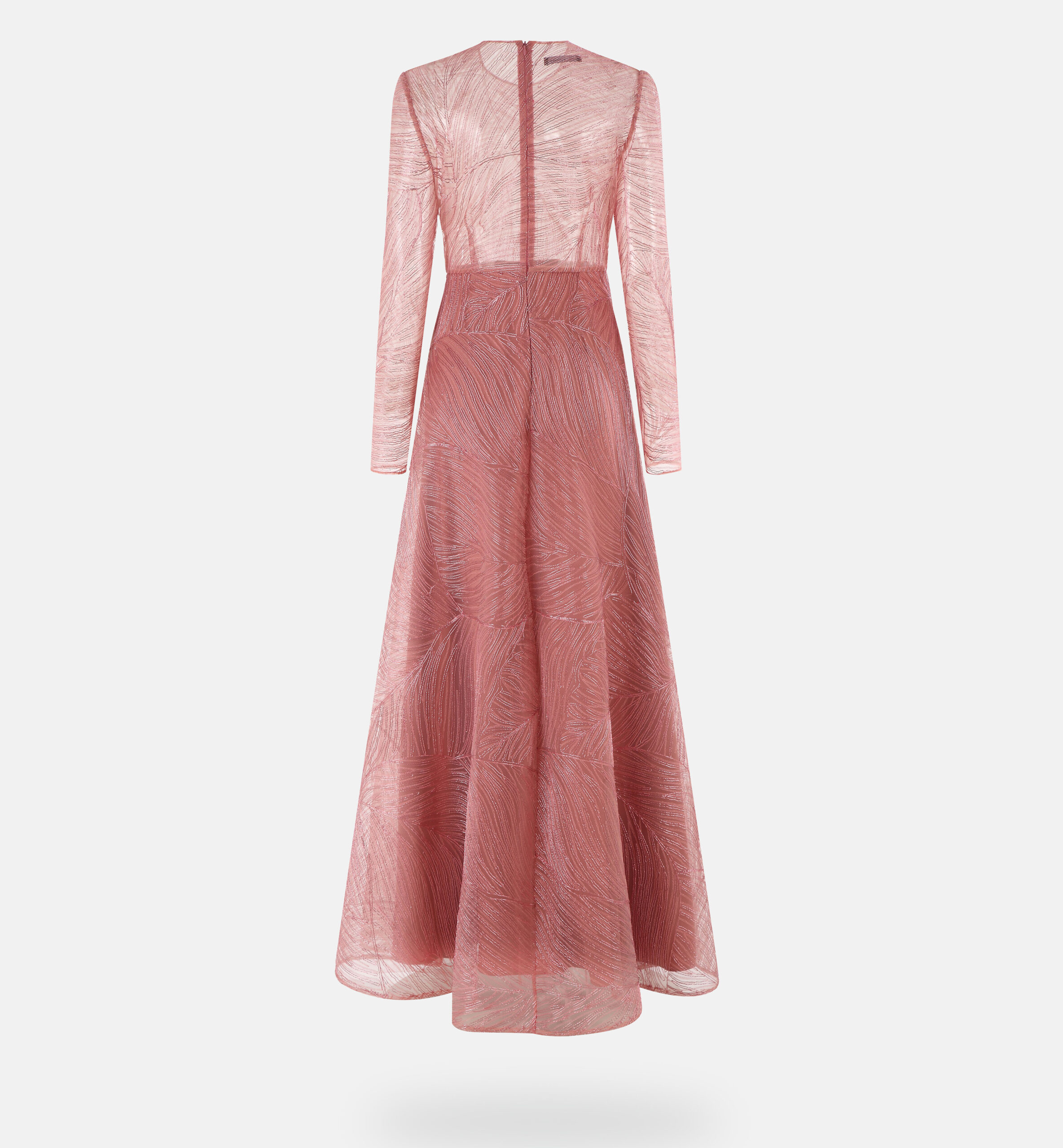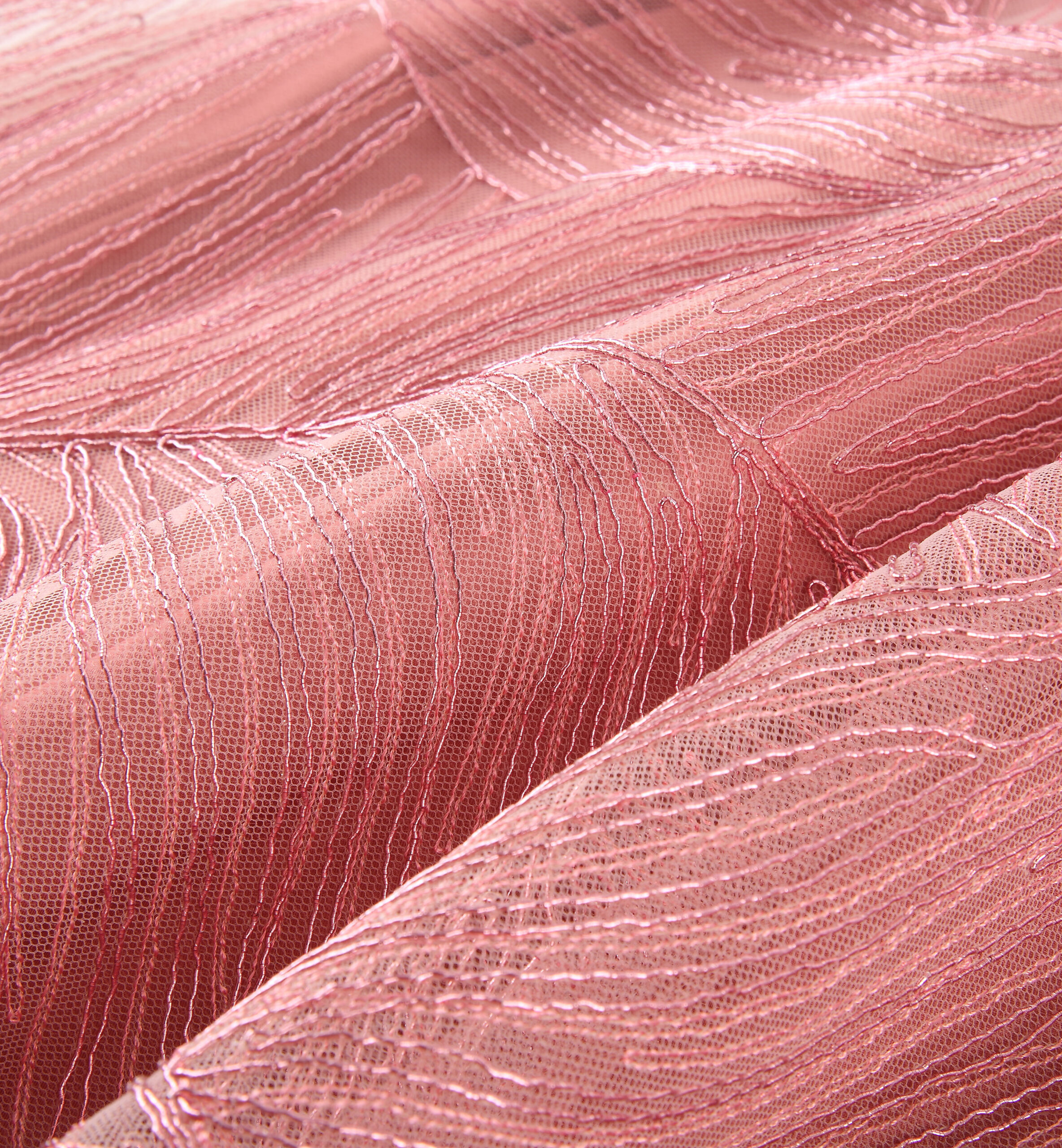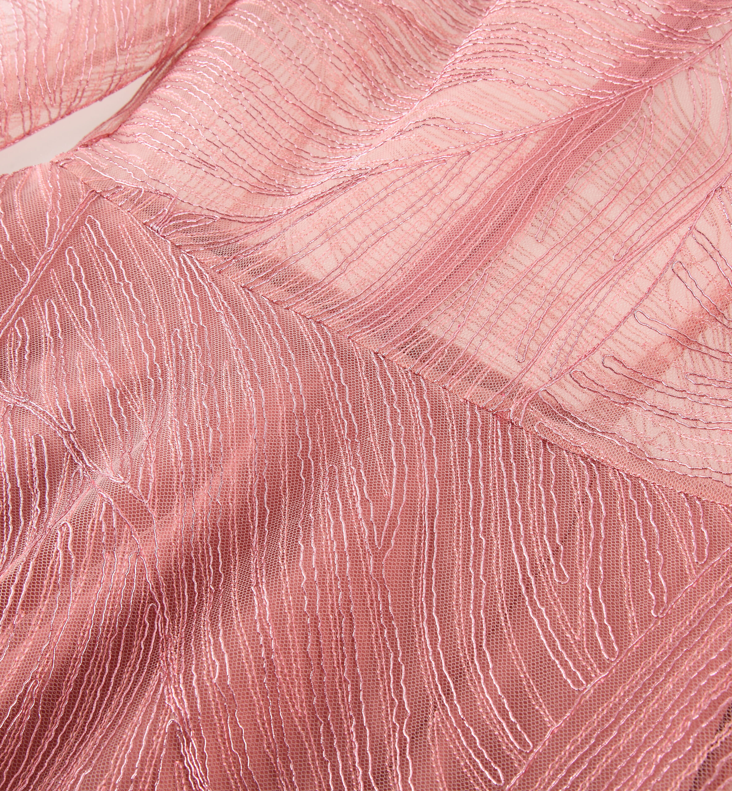 שמלת טול ורקמת רפיה מטאלית, ורוד