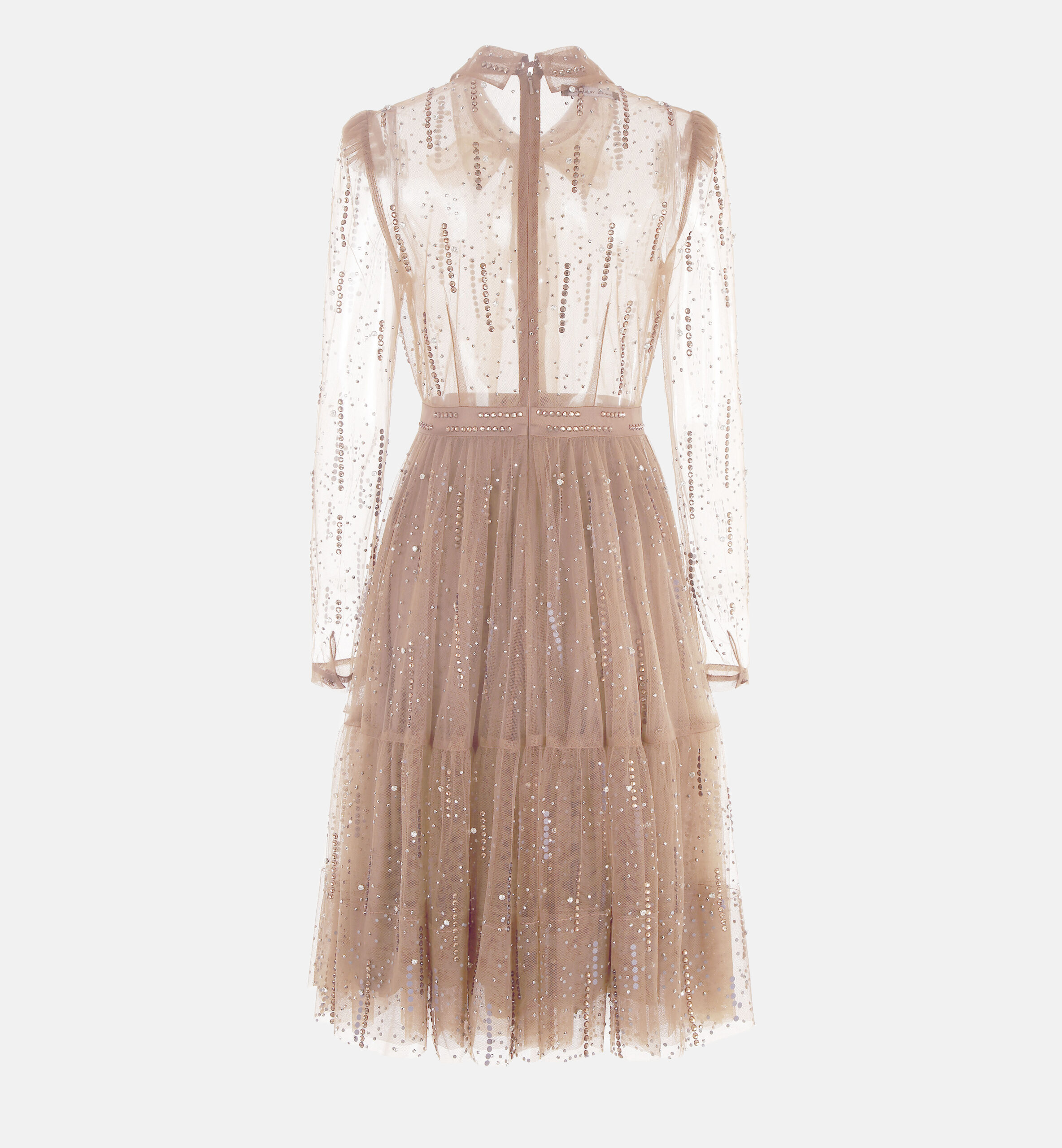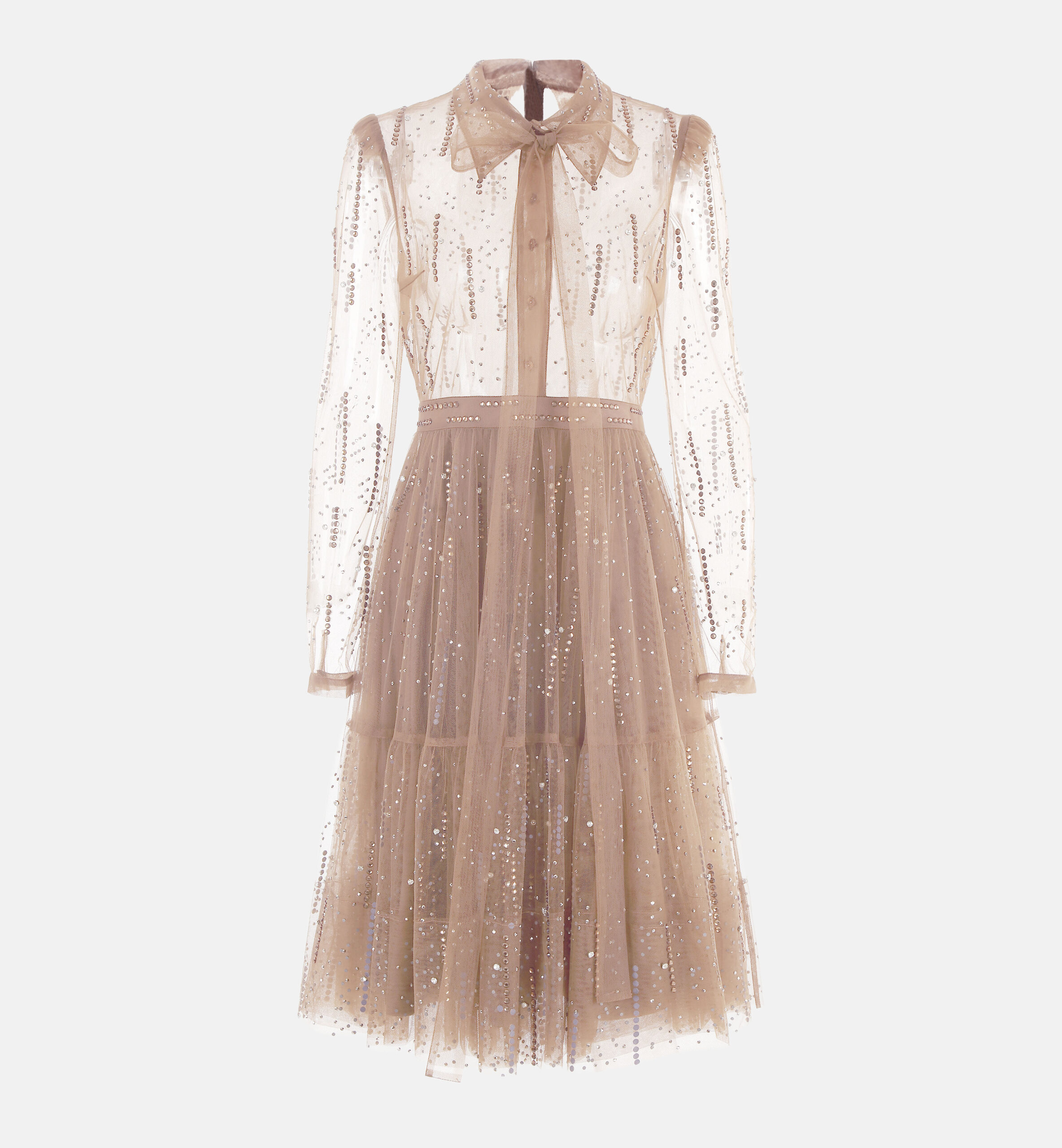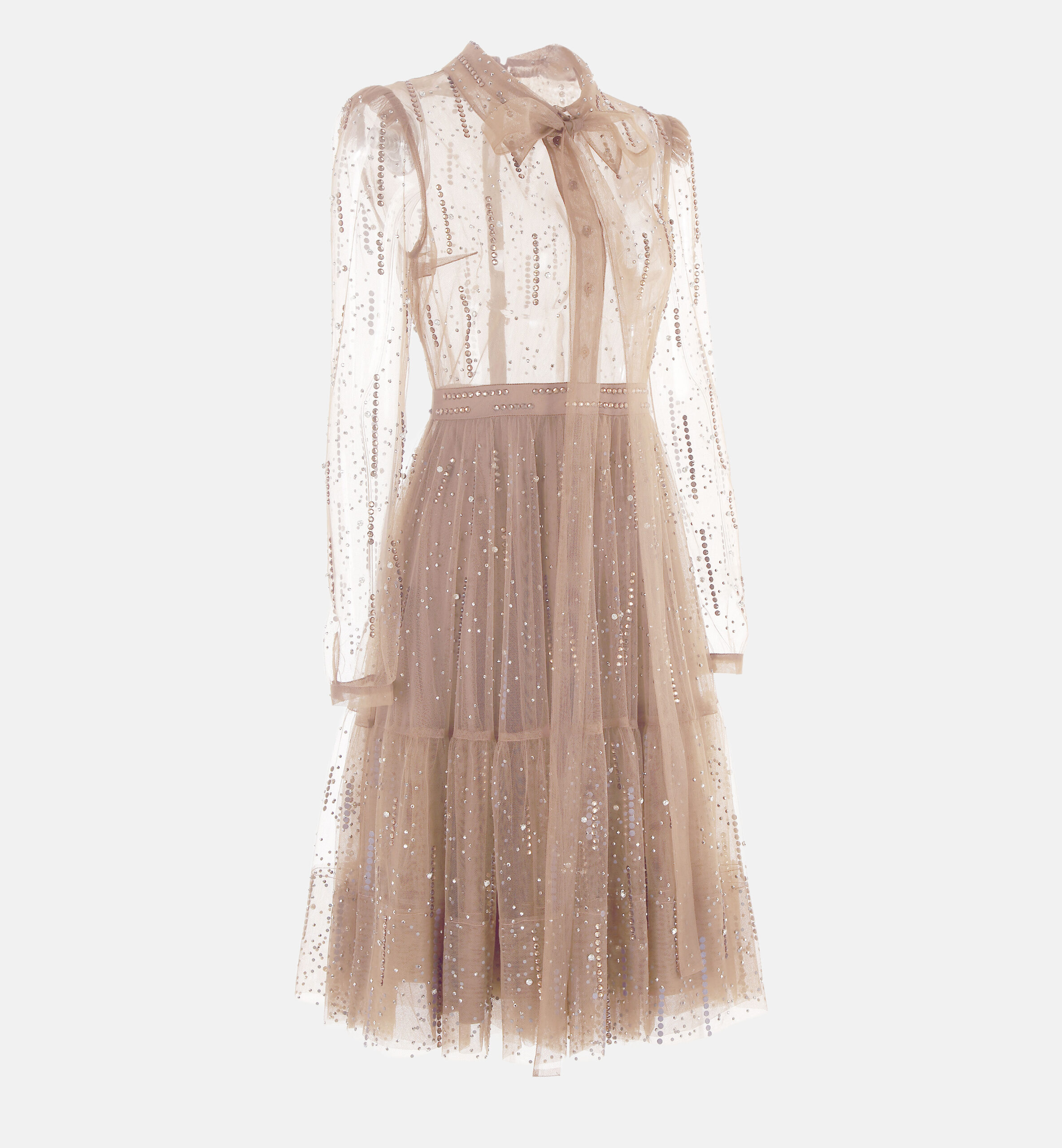 שמלת טול אבנים מכופתרת, בז׳