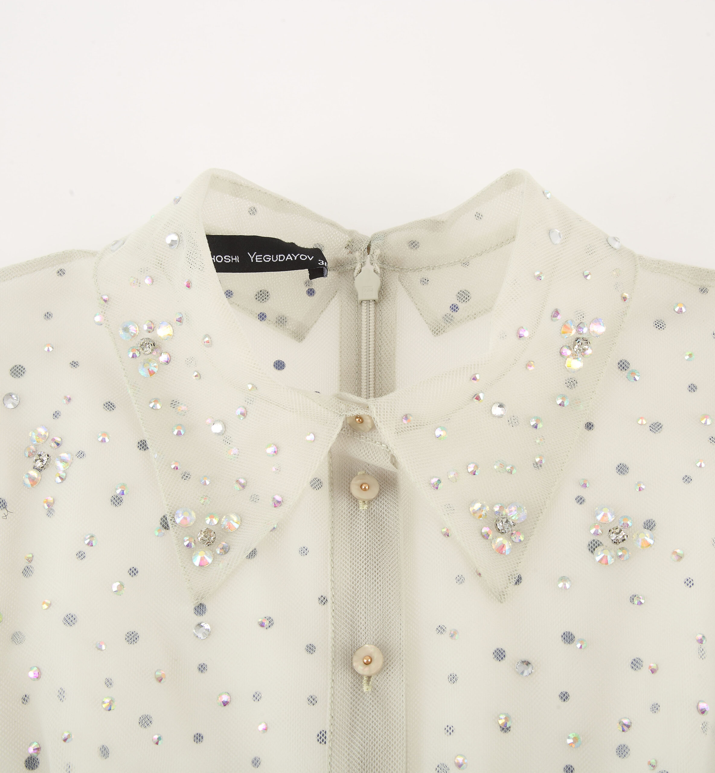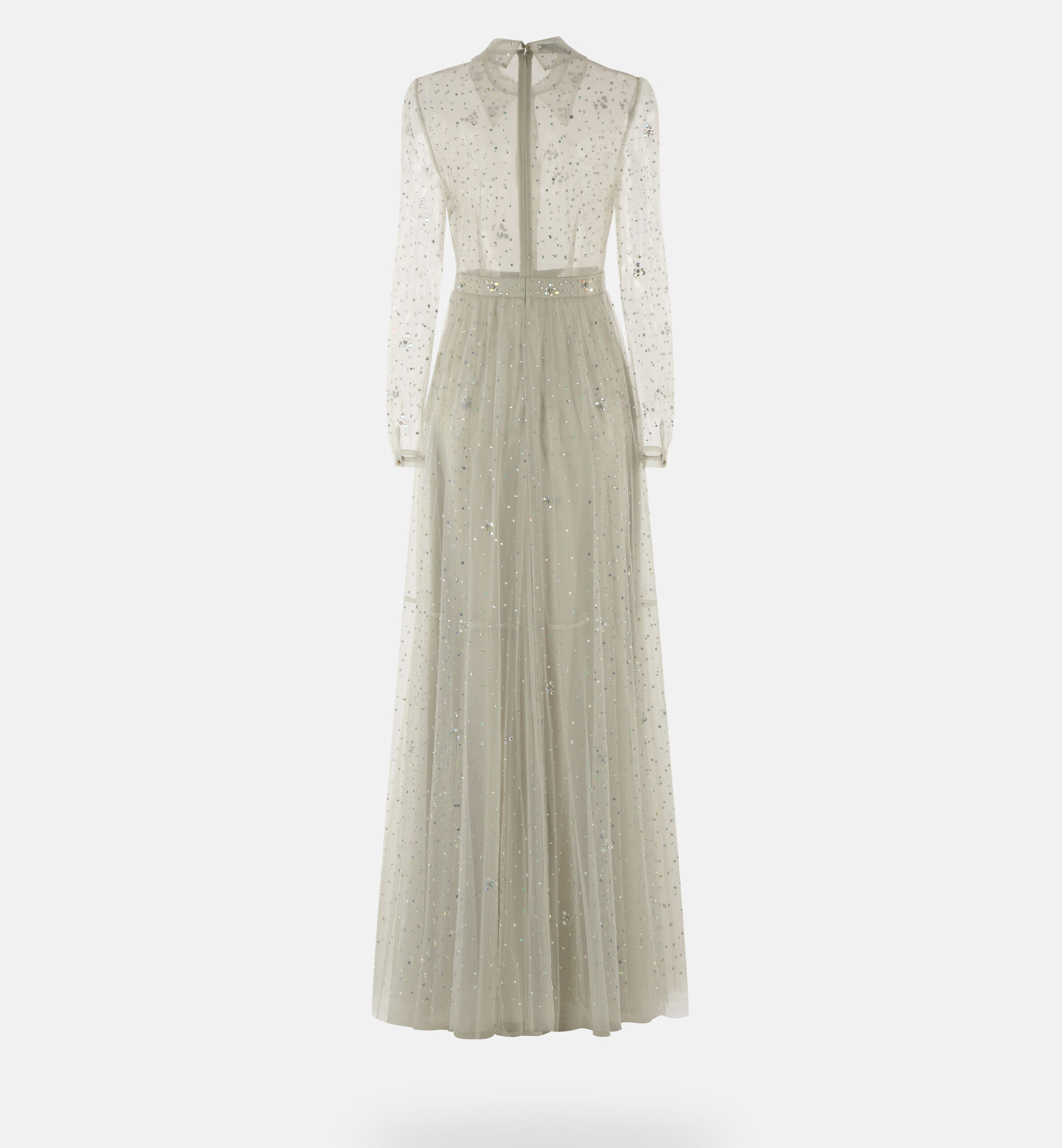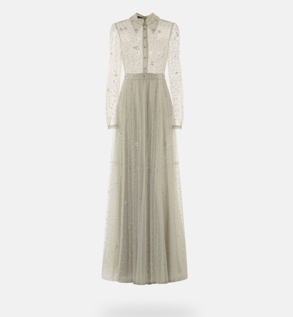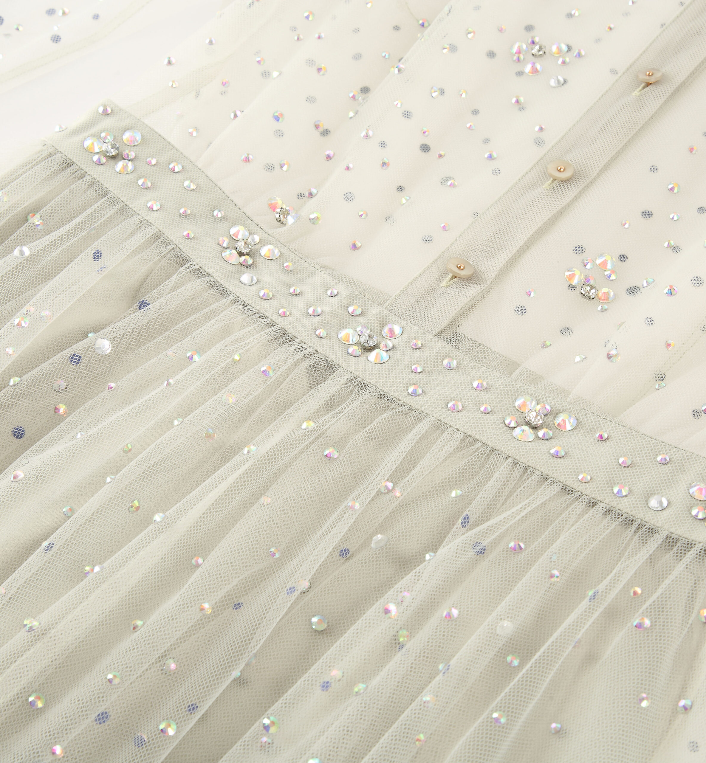 שמלת טול אבנים מכופתרת מקסי, ירוק
