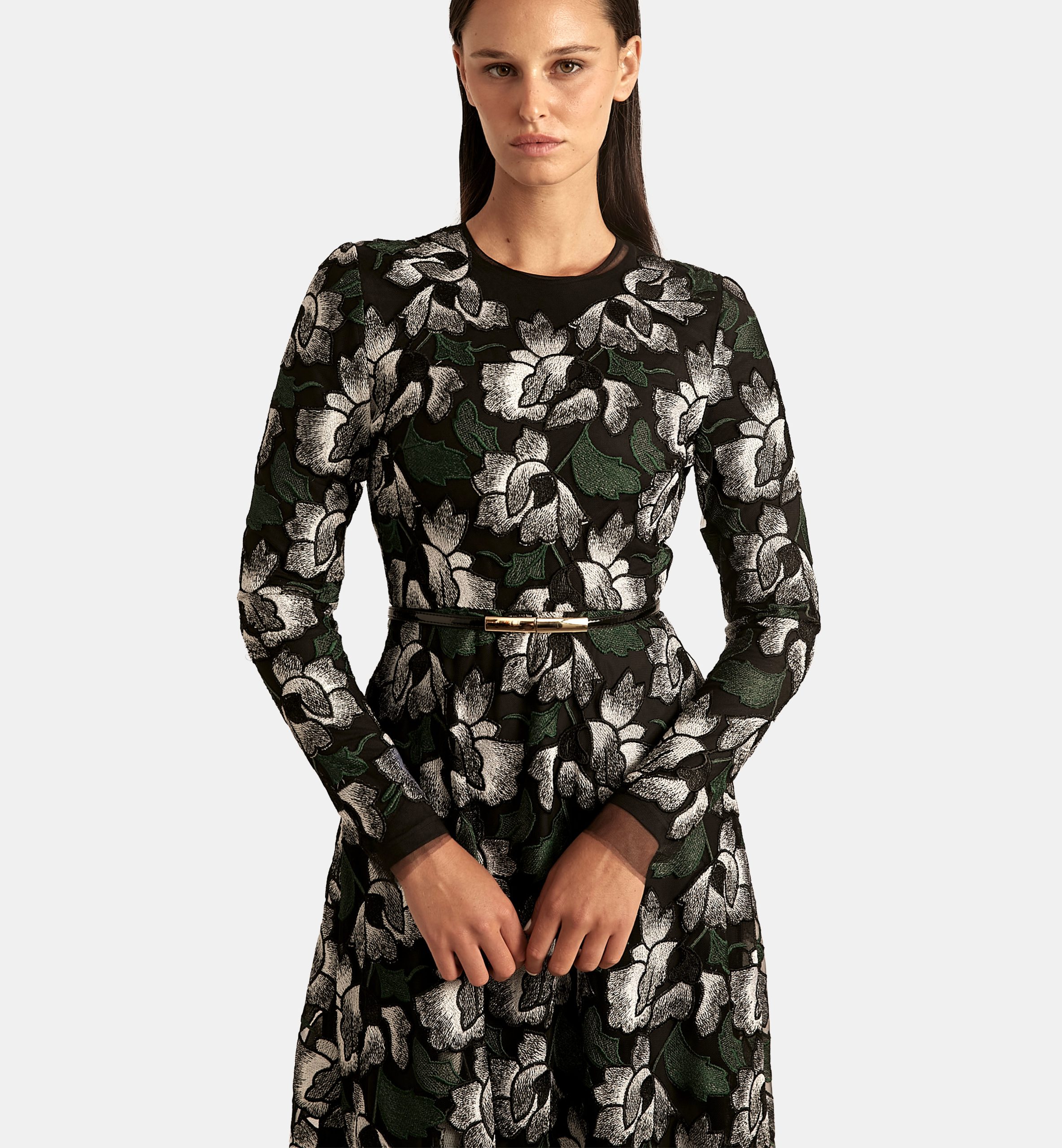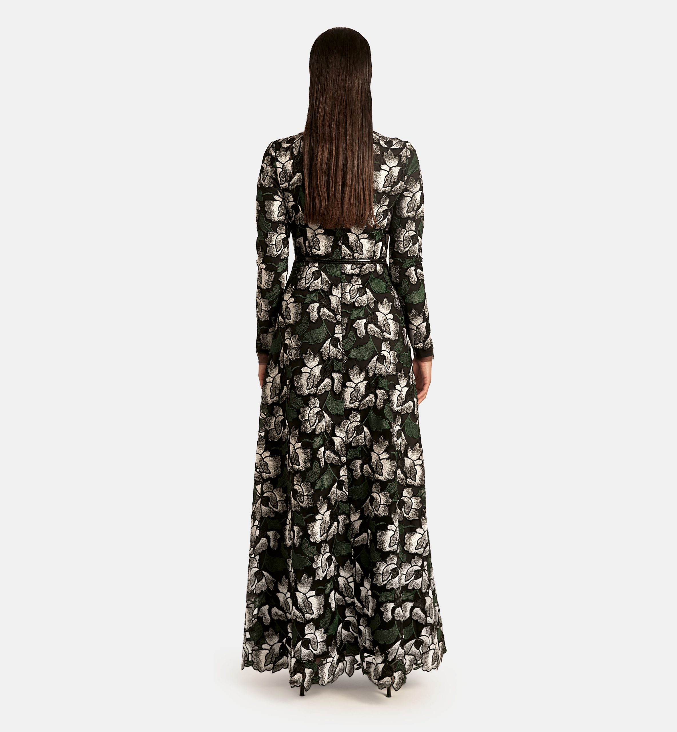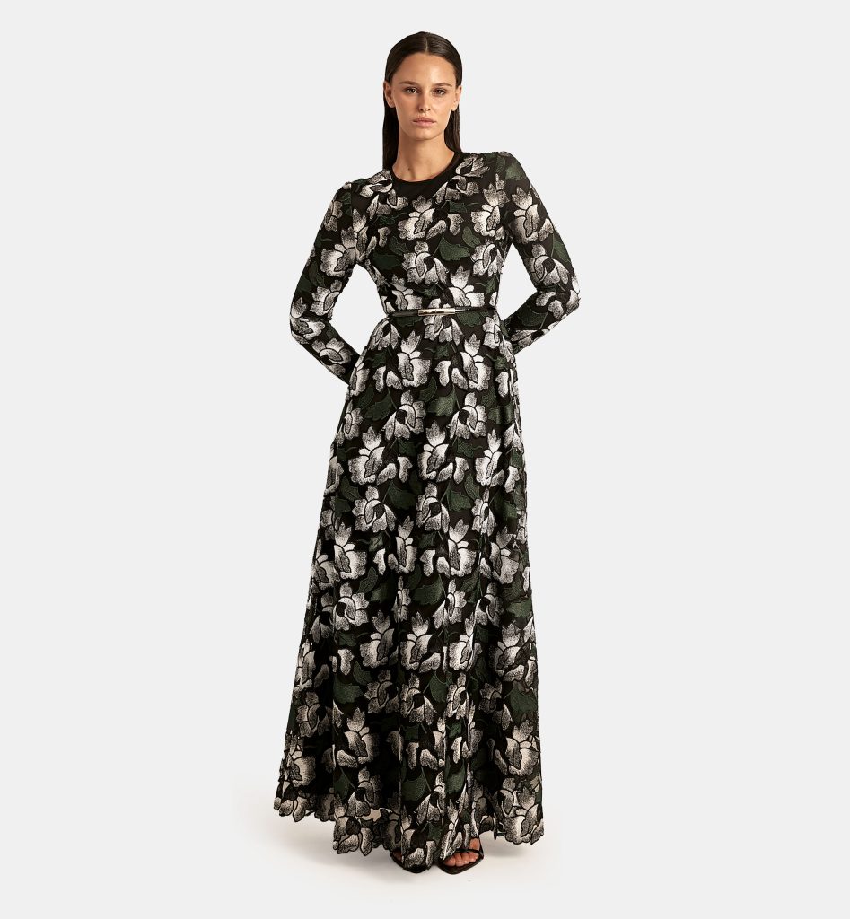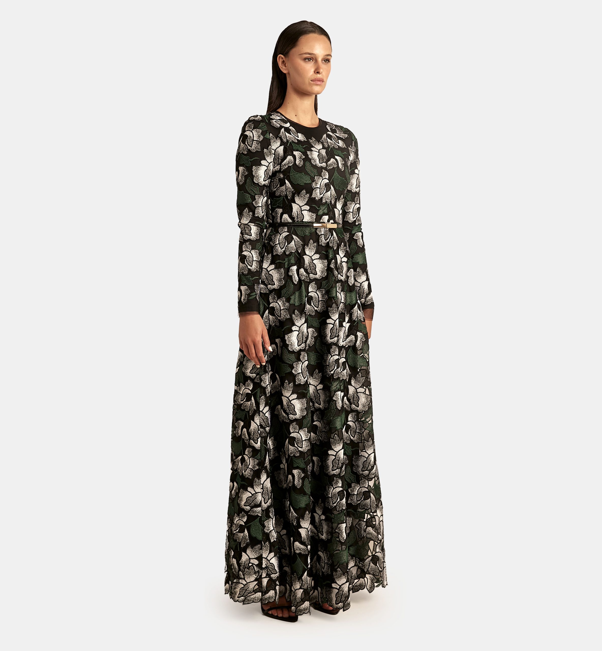 שמלה טפט ועיטורים גיאומטריים מקסי, זהב